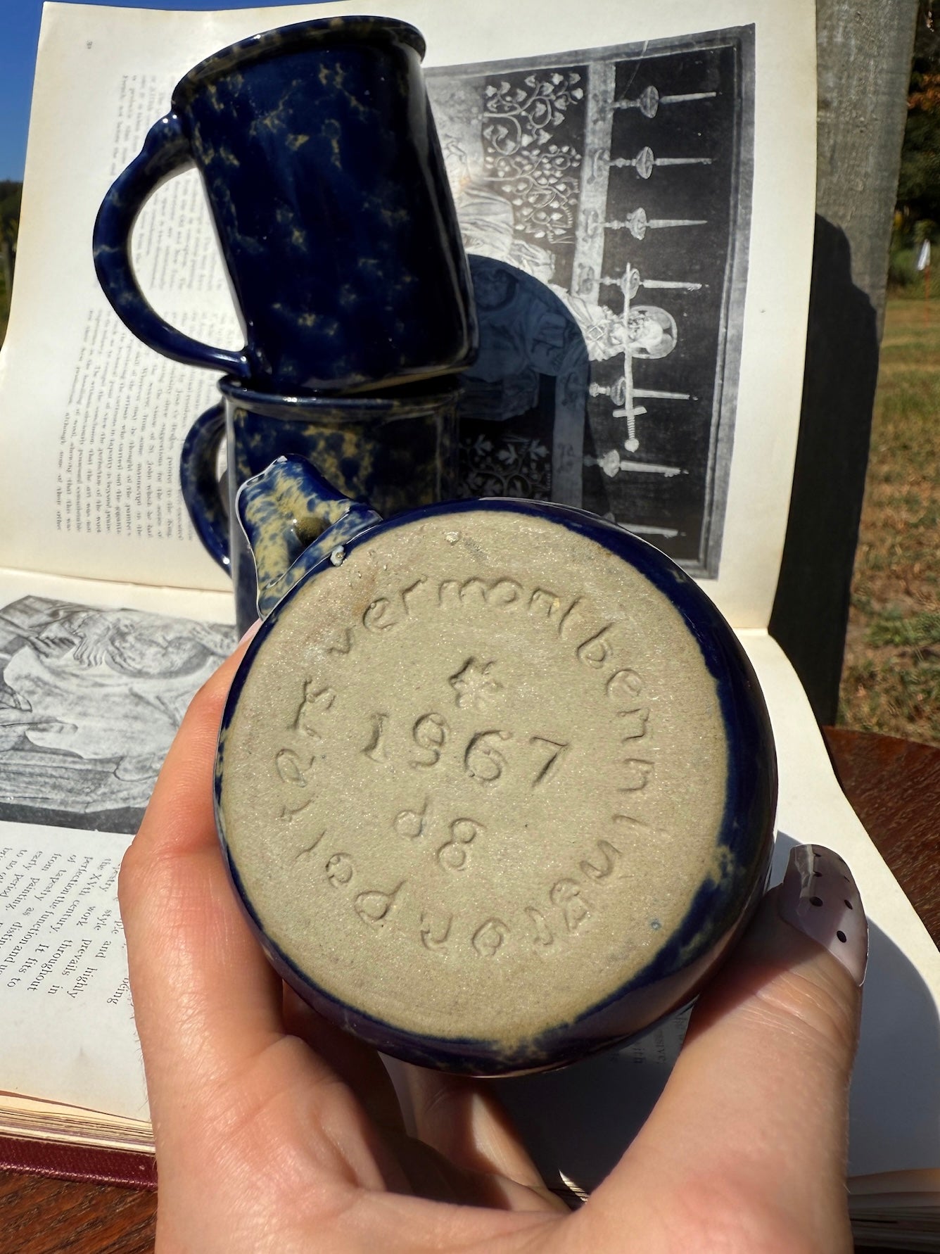 Vintage 1960s Bennington Potters Agate Blue Mug Set (3).