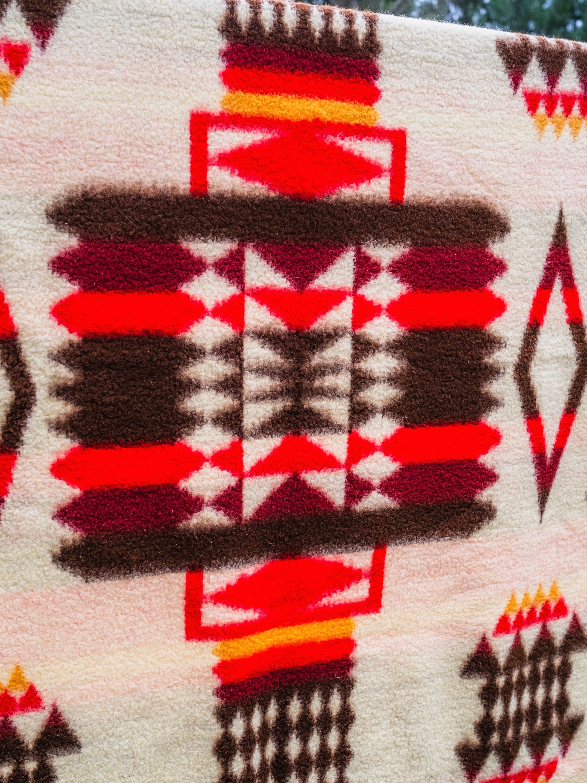 Vintage 1960s Cannon Ibena Southwestern Pattern Blanket.