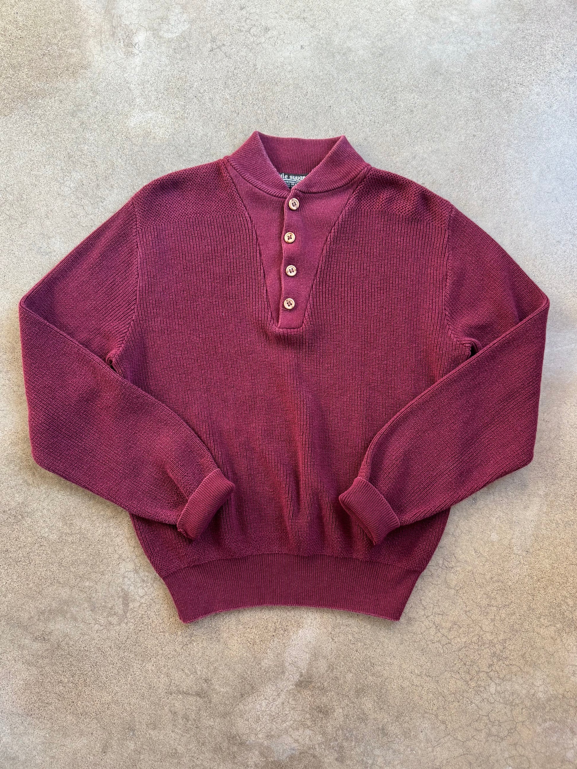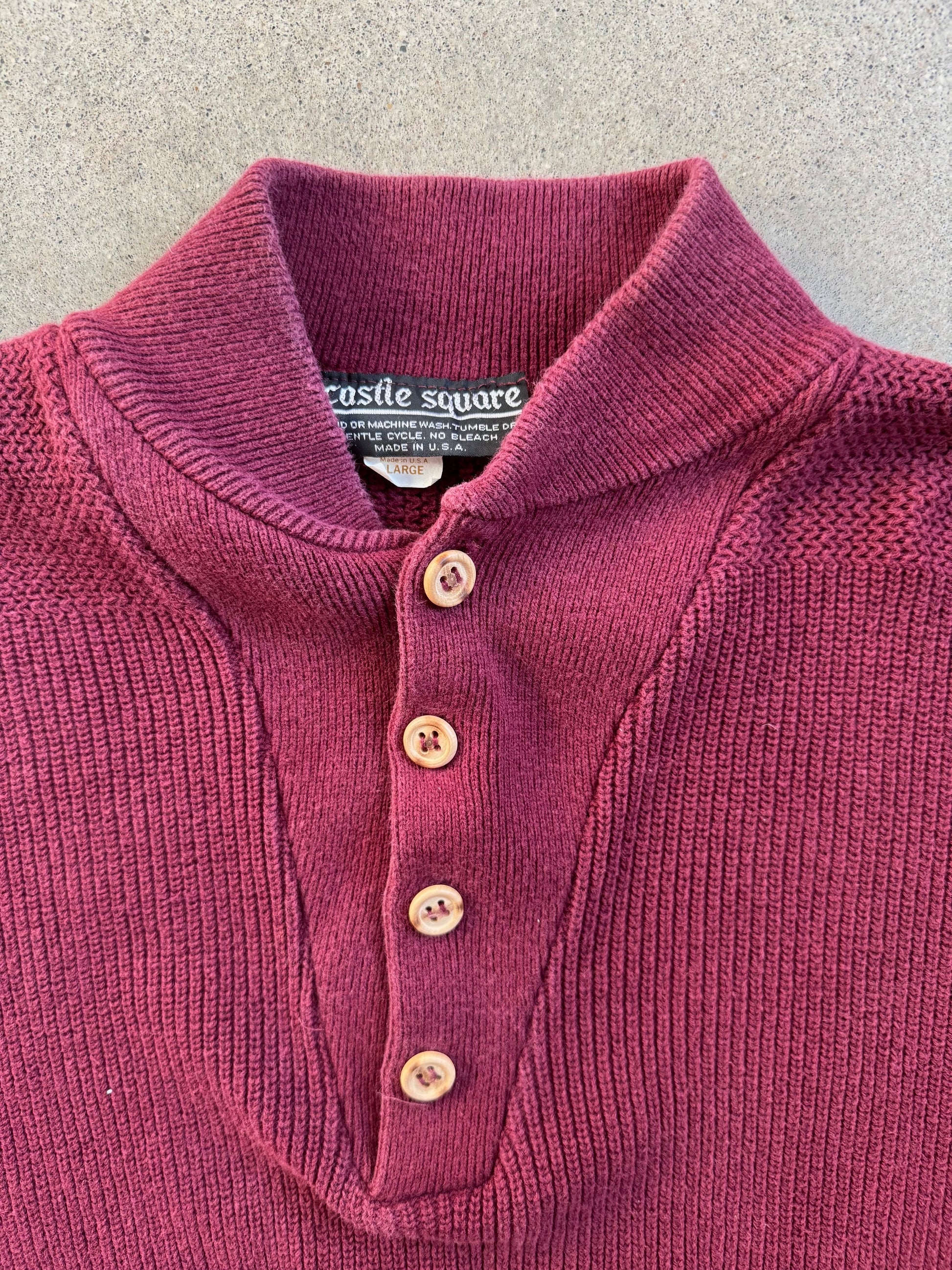 Vintage 1960s Castle Square Burgundy Cotton Henley Sweater | Large