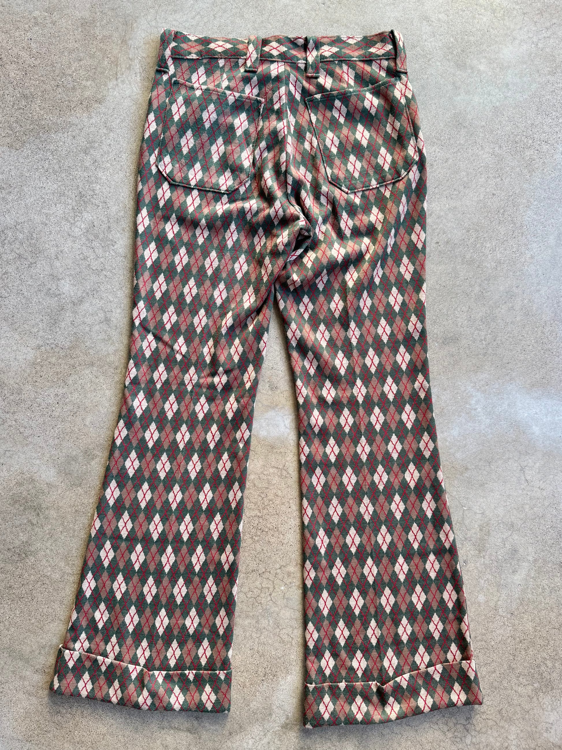Vintage 1960s Argyle Knit Cuffed Flare Trousers | Small
