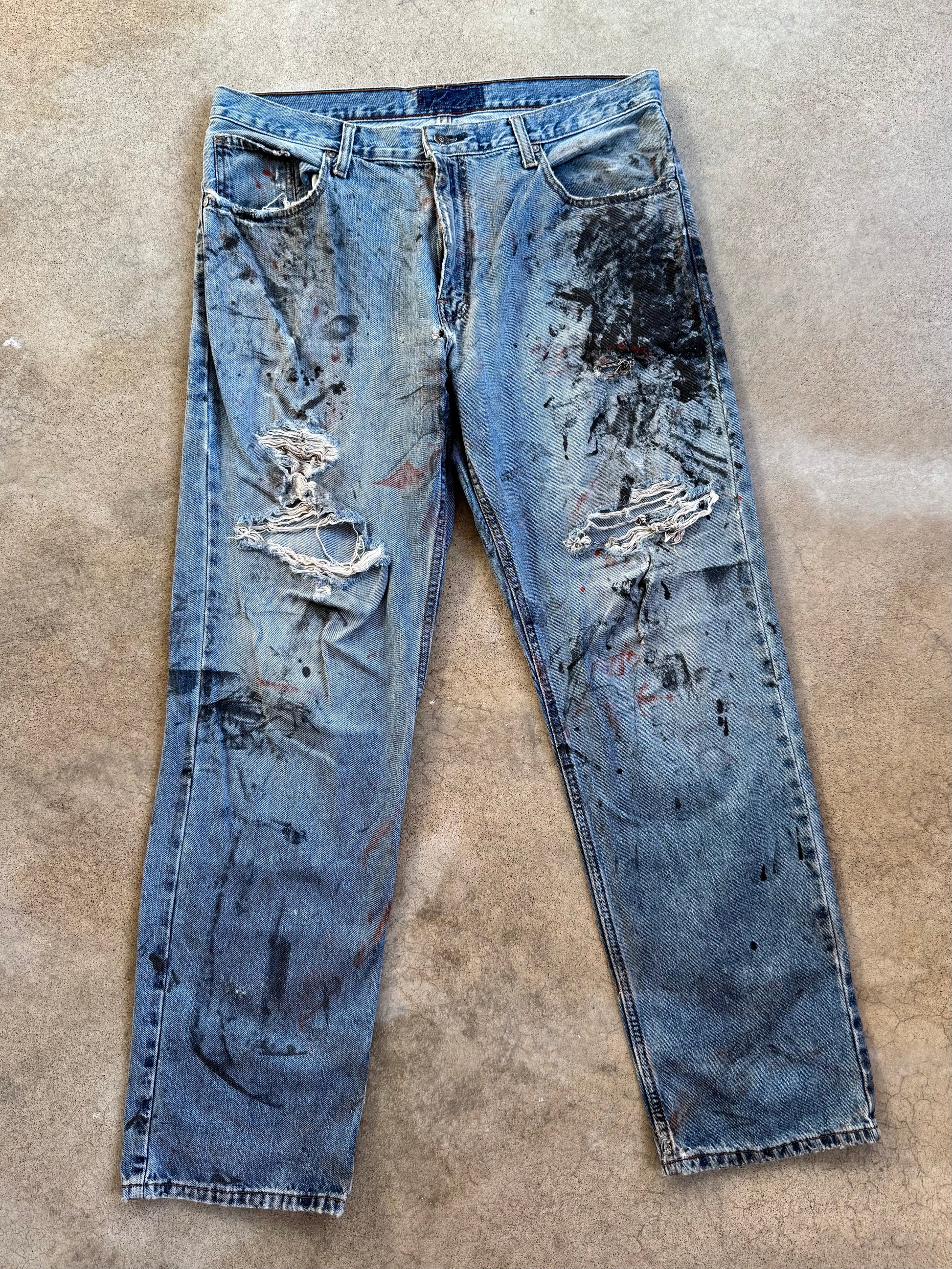 Vintage 1990s Arizona Jean Co. Distressed Paint Splatter Jeans | Waist 38”