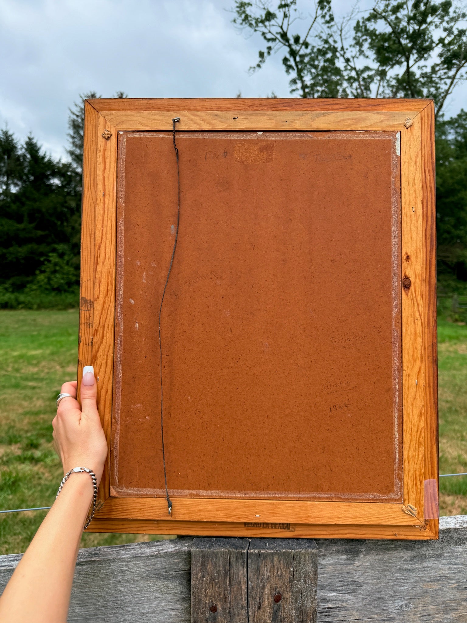 Vintage 1960s Framed & Signed “Boy Fishing” Oil Painting on Board.