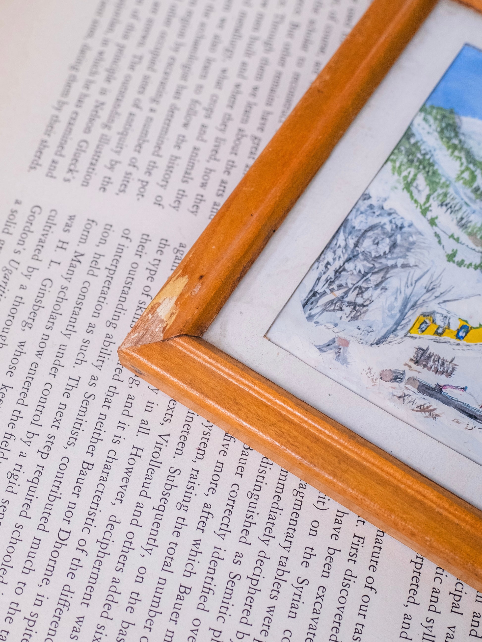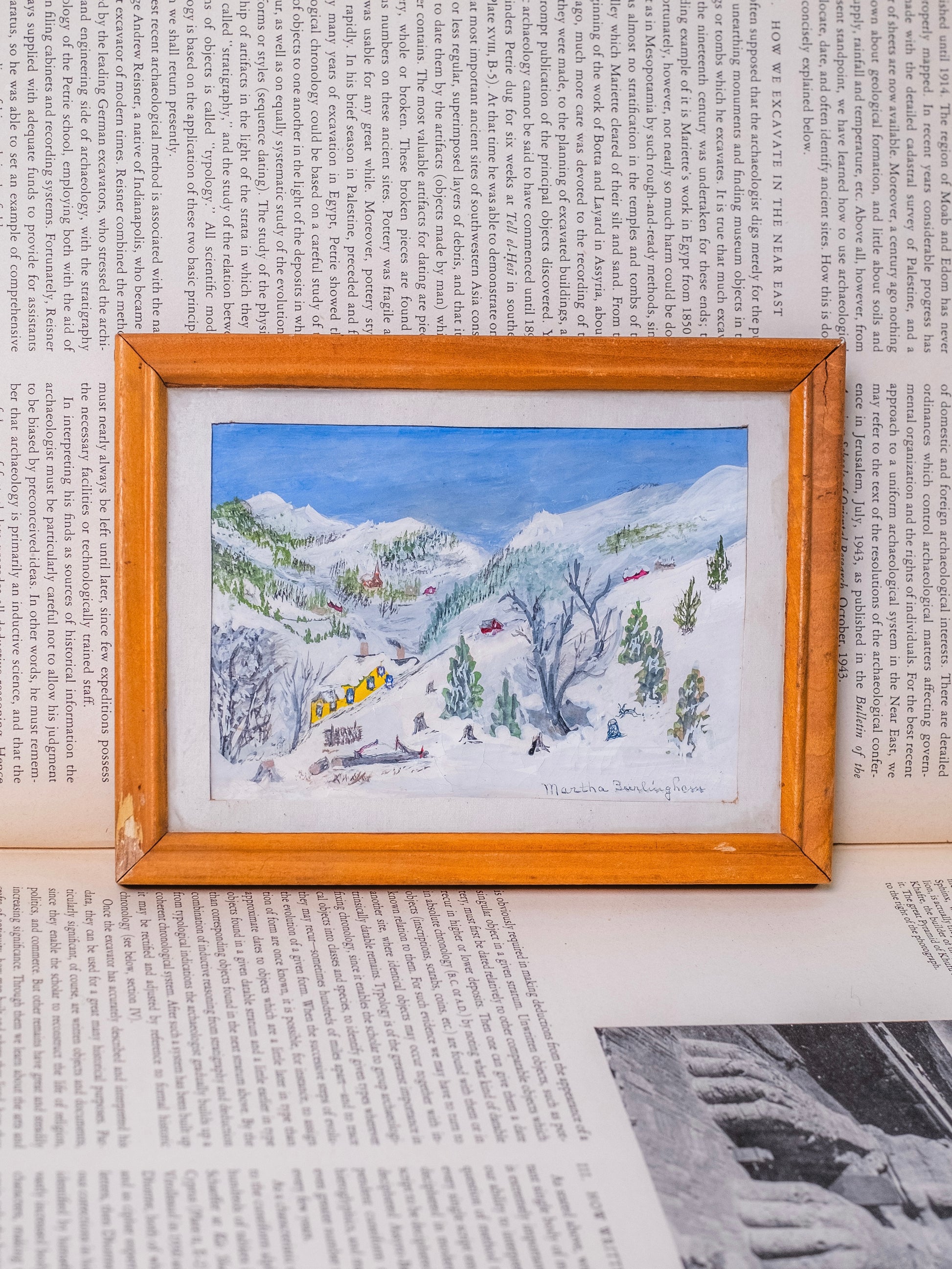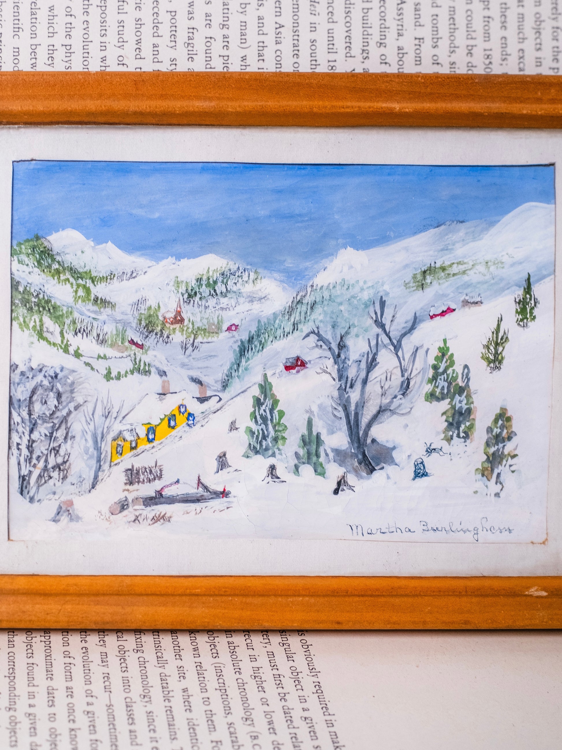 Vintage 1960s Wood Framed Martha Burlingham “Echo Valley” Snow Scene Watercolor Painting.