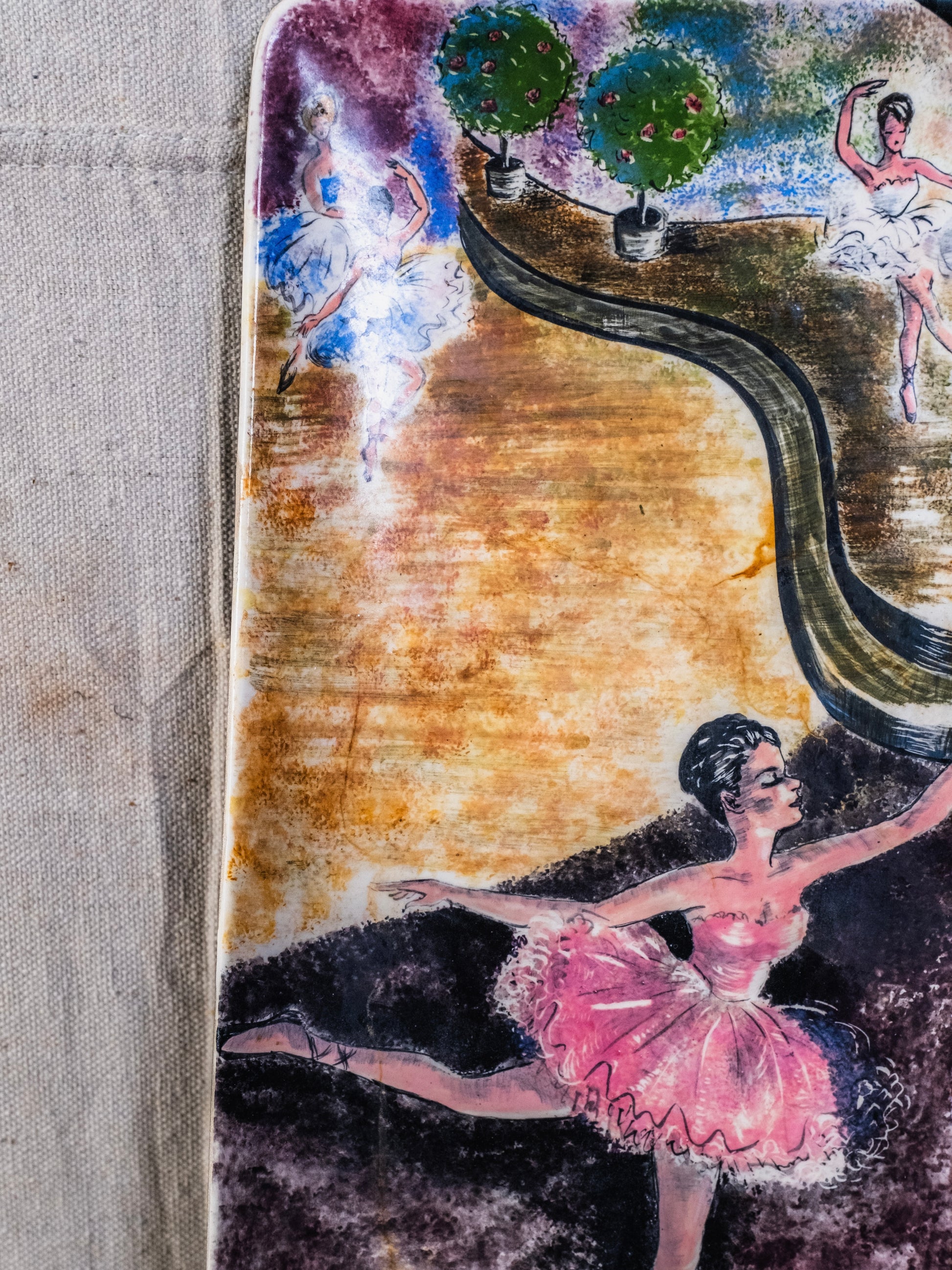 Vintage 1960s Handmade & Signed "Dancing Ballerina" Ceramic Dish / Wall Tray