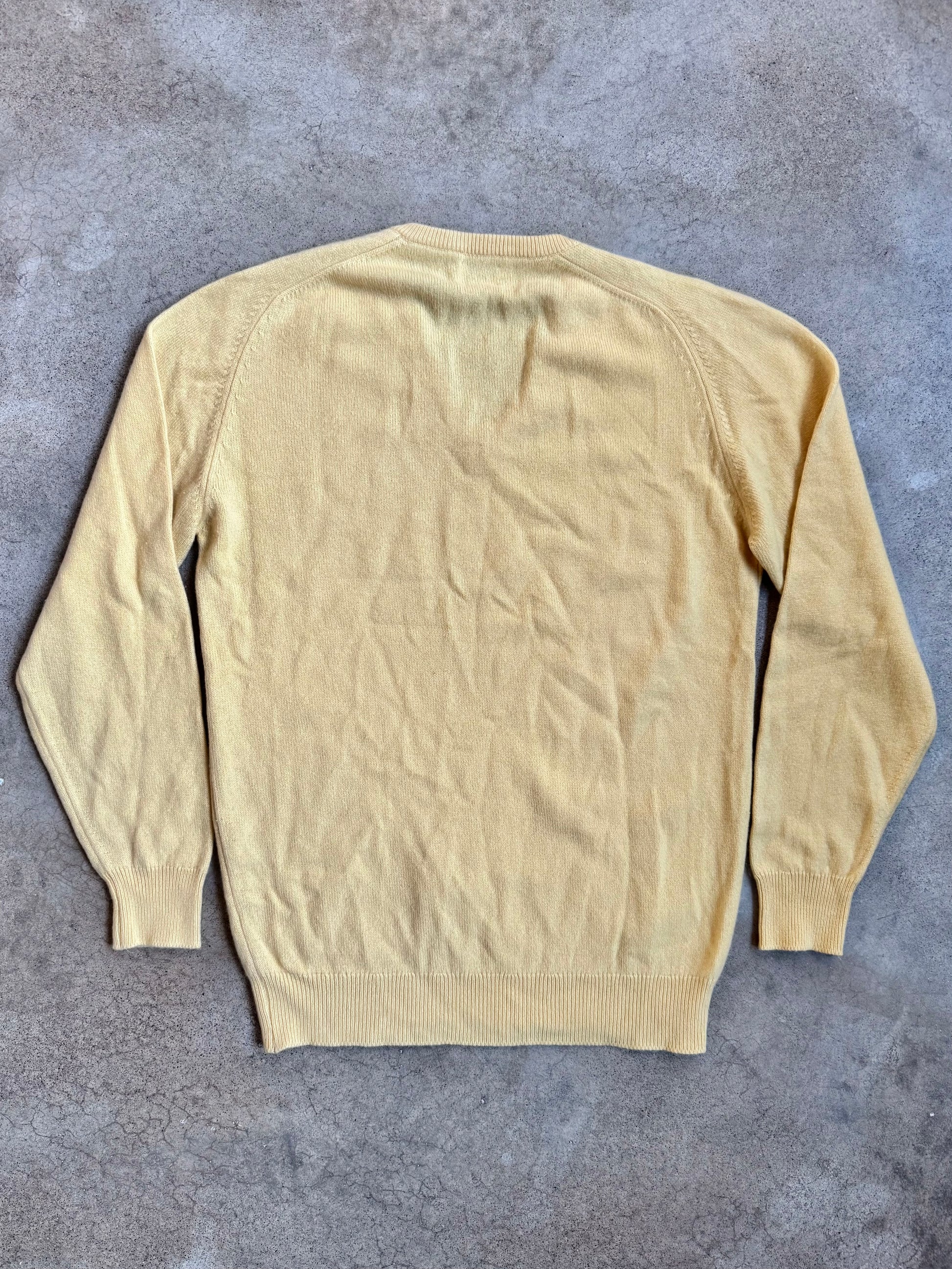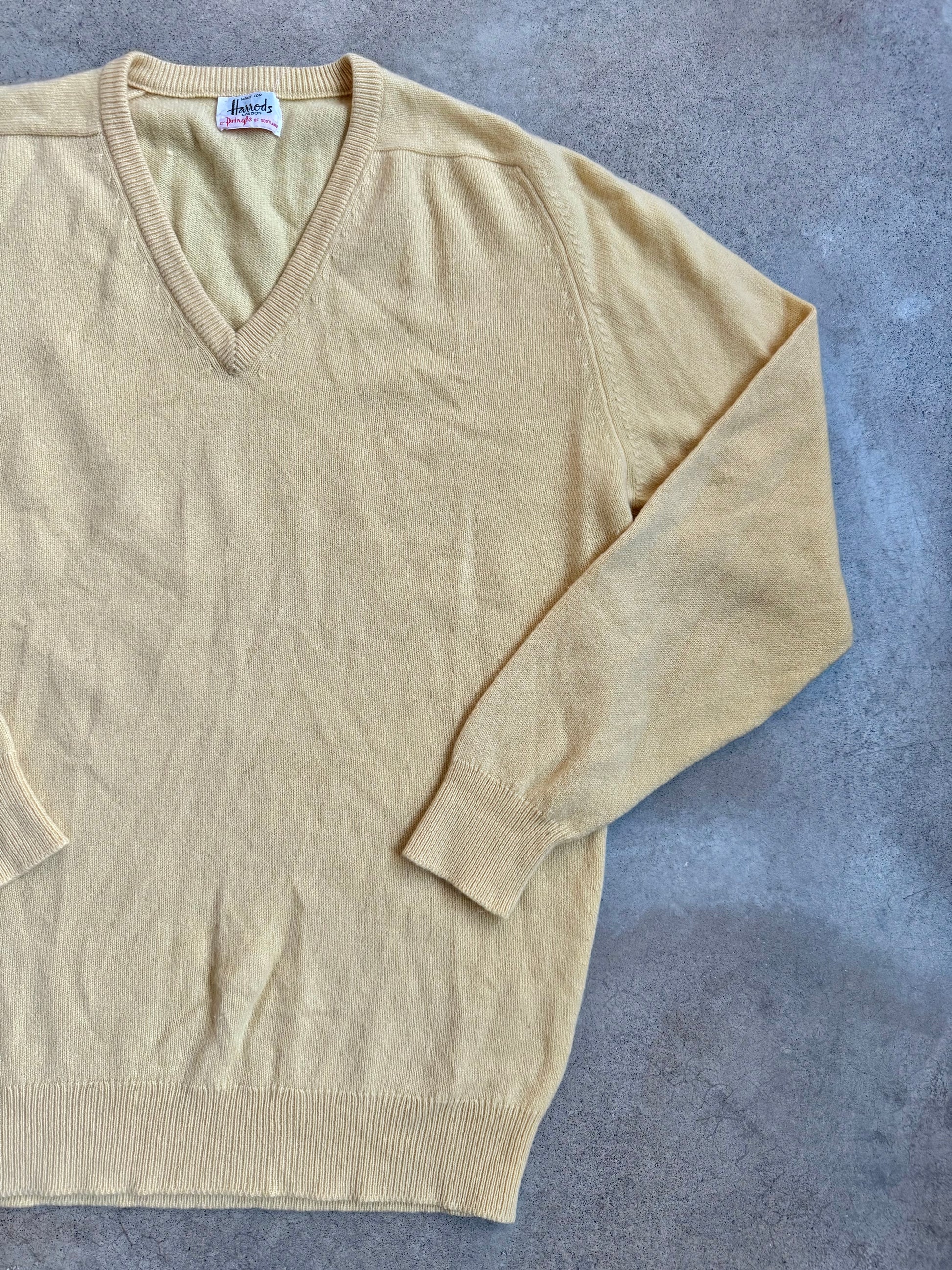 Vintage 1960s Harrods by Pringle Scotland Yellow 100% Cashmere V-Neck Sweater | Large