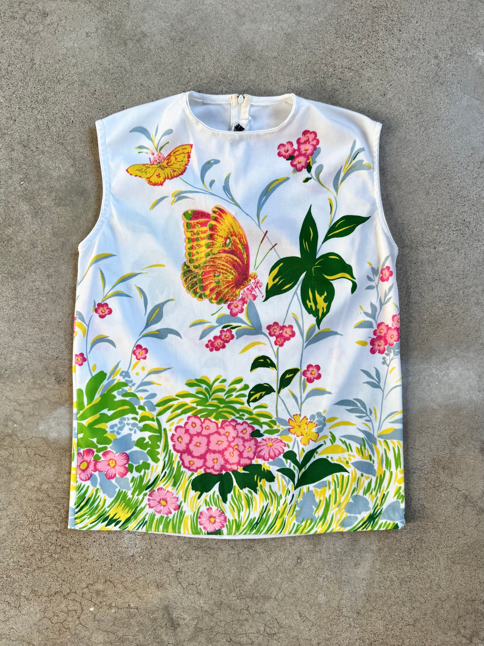 Vintage 1960s Kmart Butterfly Print Sleeveless Top | Medium
