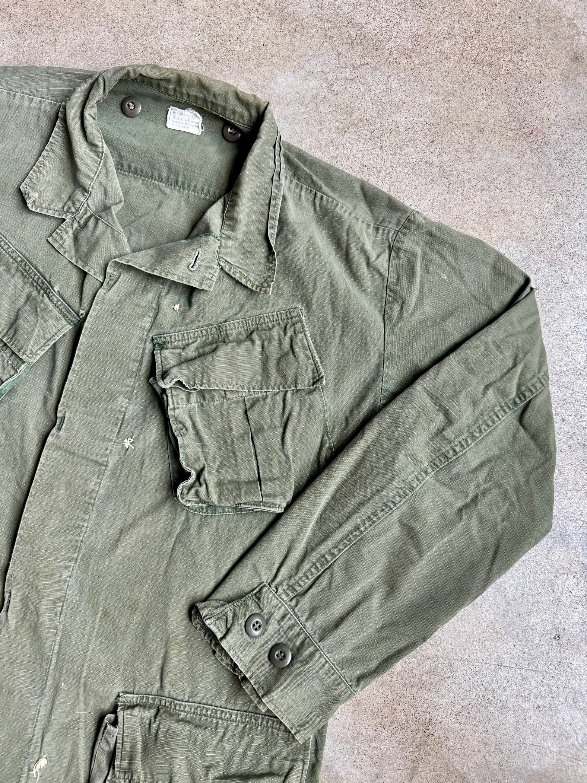 Vintage 1960s Military Issue Ripstop Cotton Jungle Fatigue Jacket | Medium