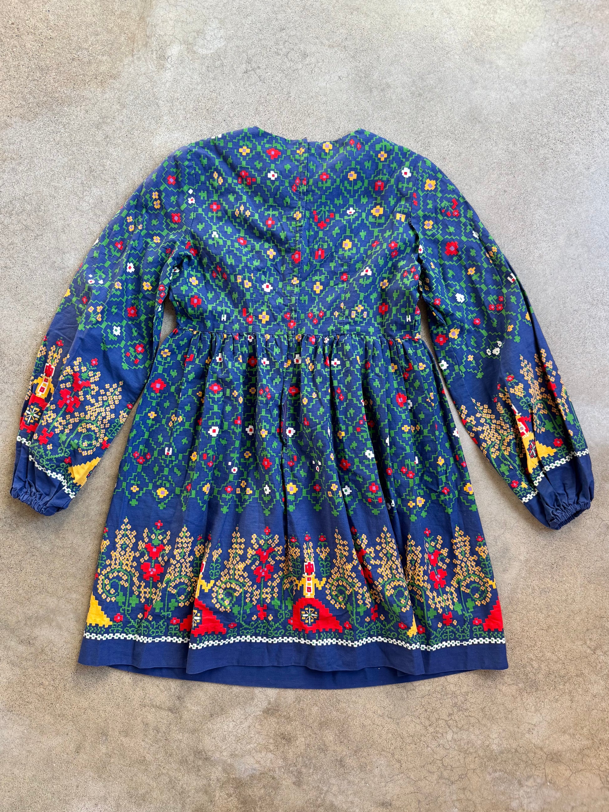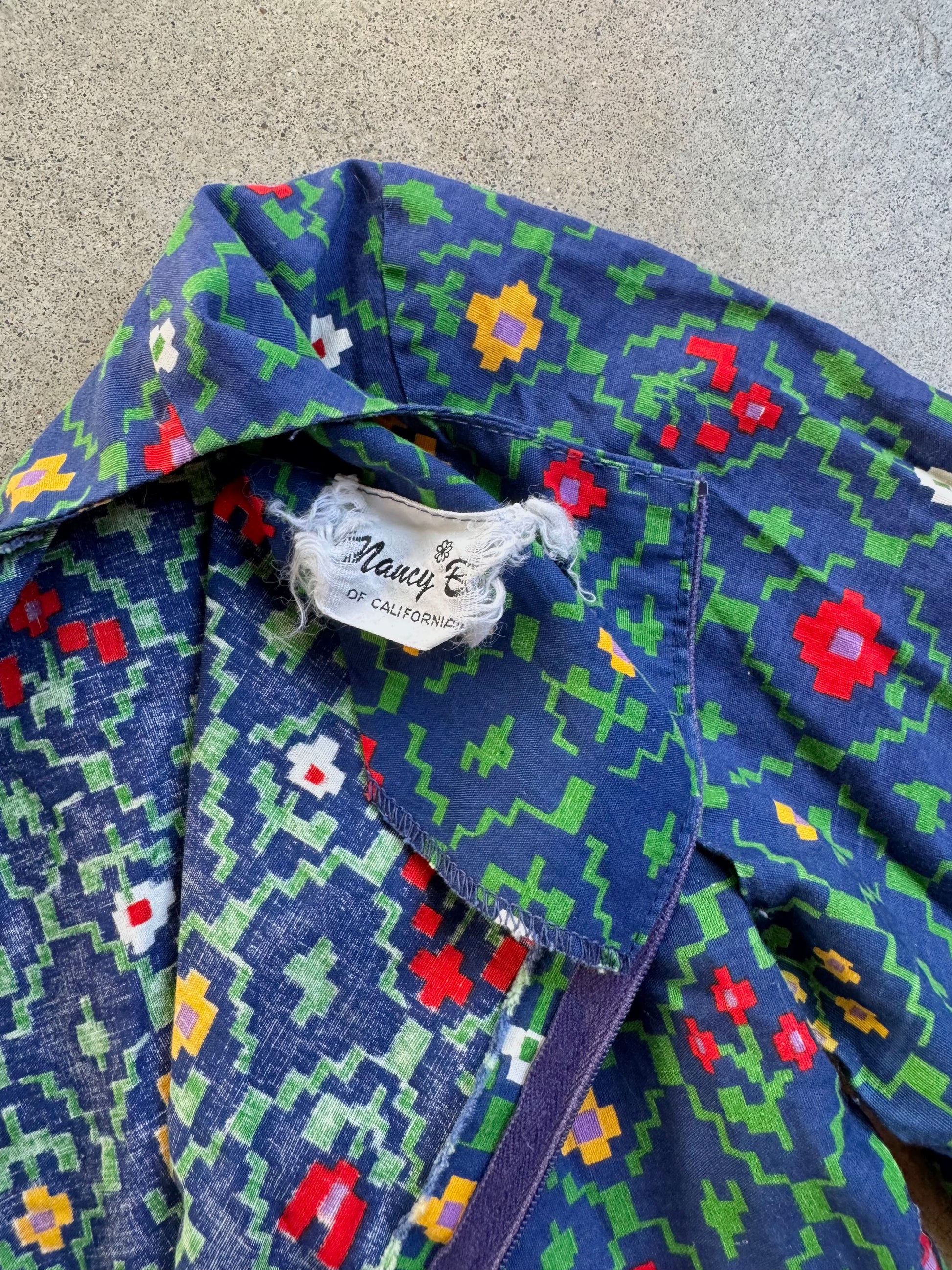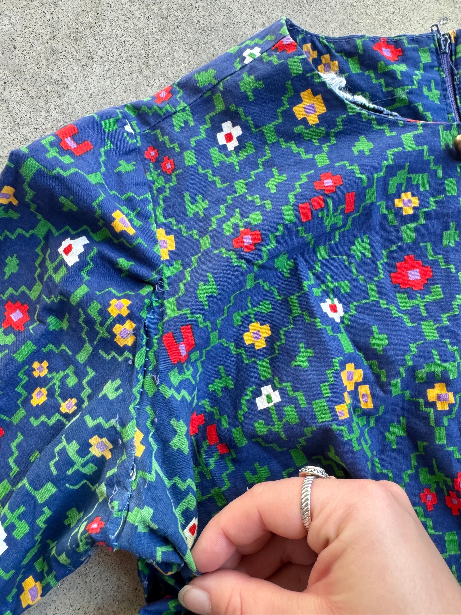 Vintage 1960s Nancy B California Pixelated Floral Long Sleeve Mini Dress | XS/S