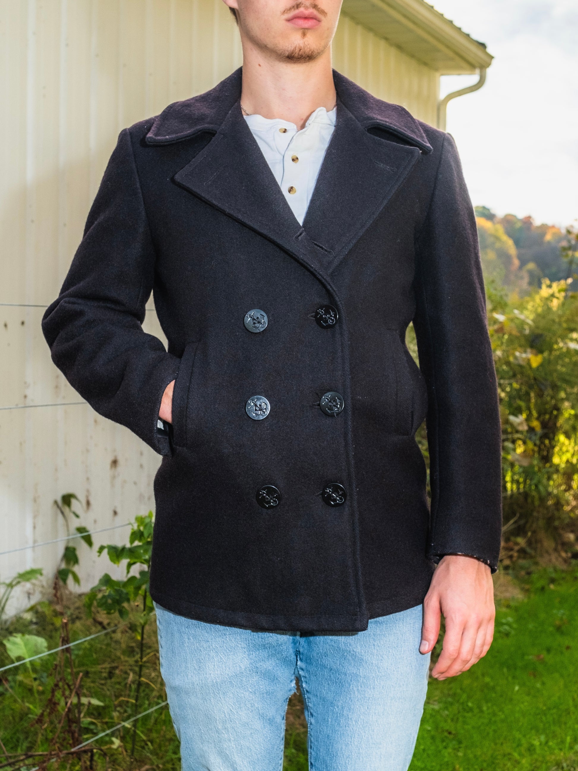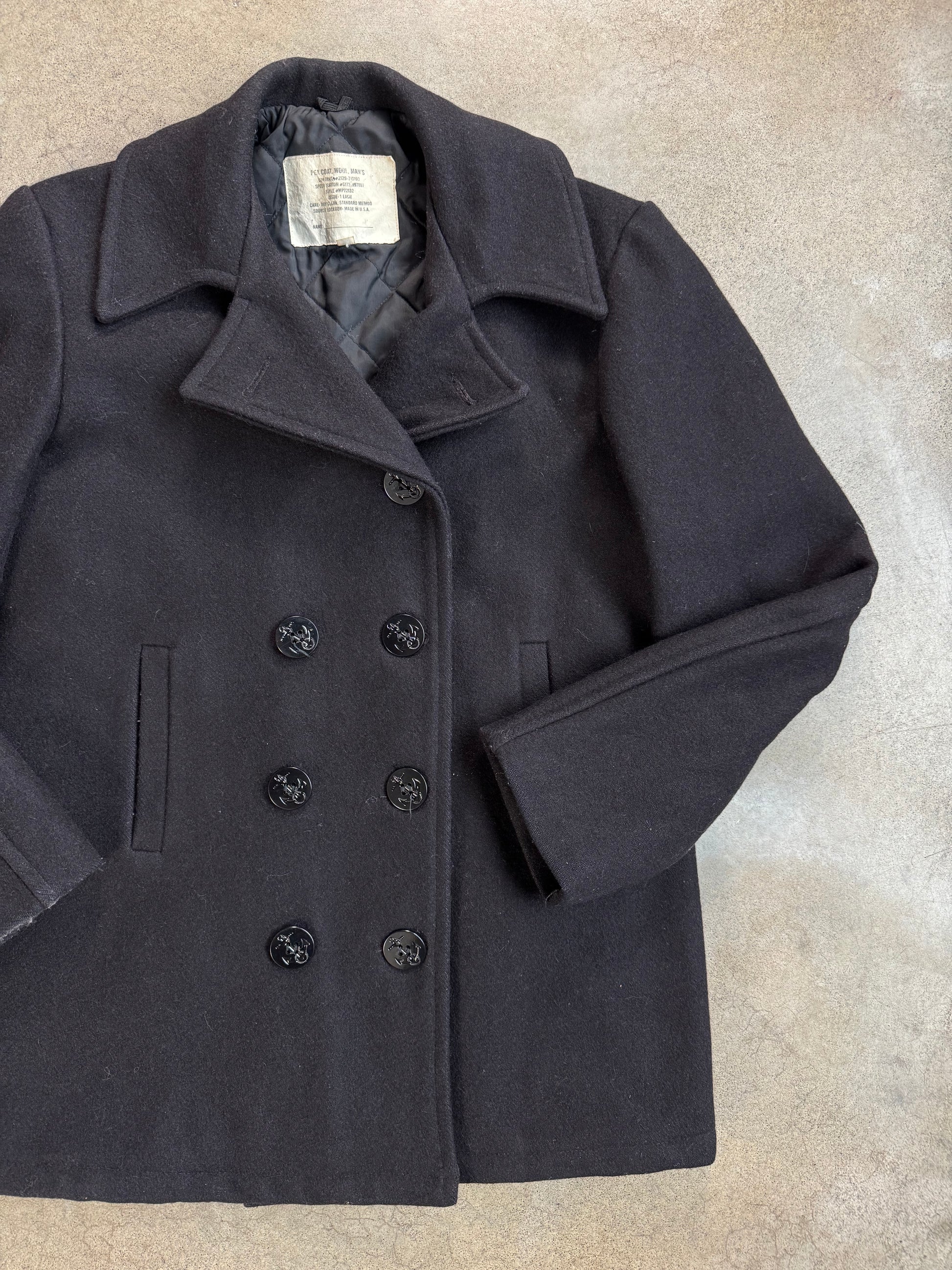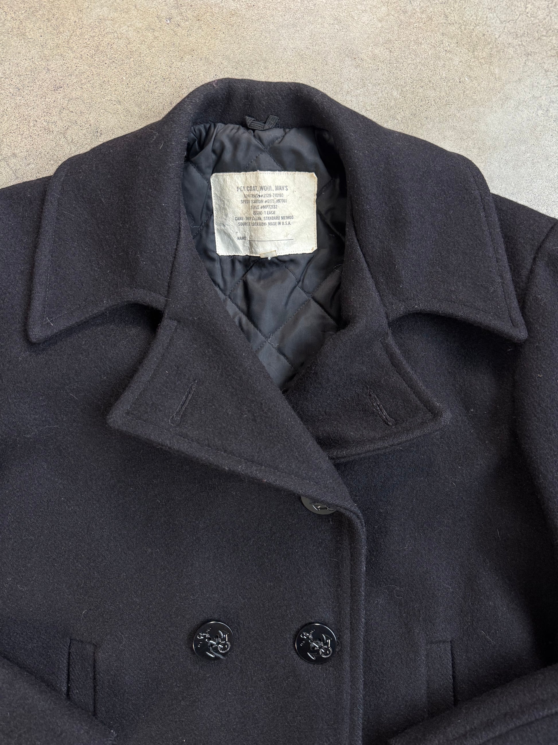 Vintage 1960s U.S. Navy Military Issue Black Wool Peacoat | 38