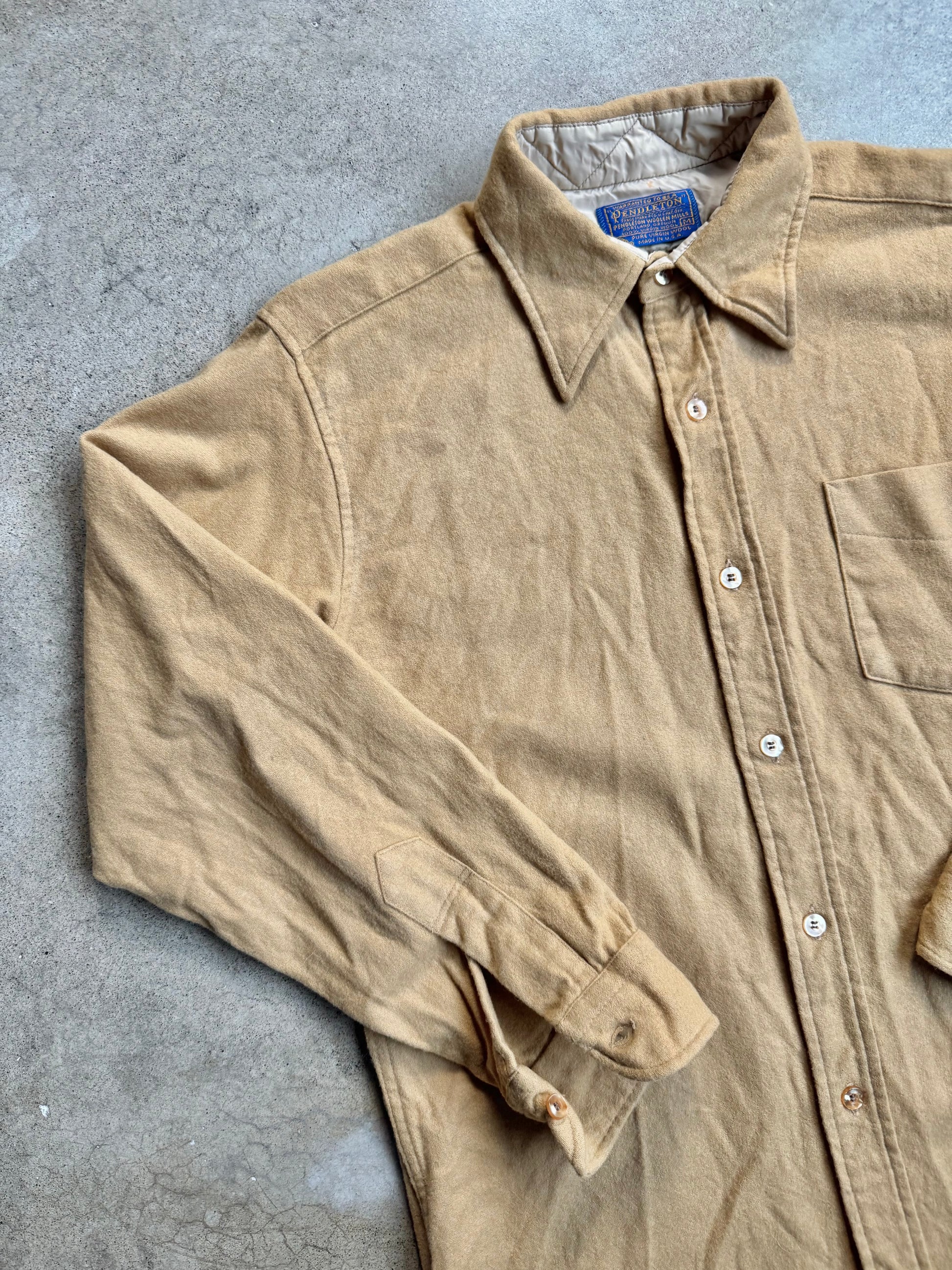 Vintage 1960s Pendleton Tan Wool Button-Up Shirt | Medium