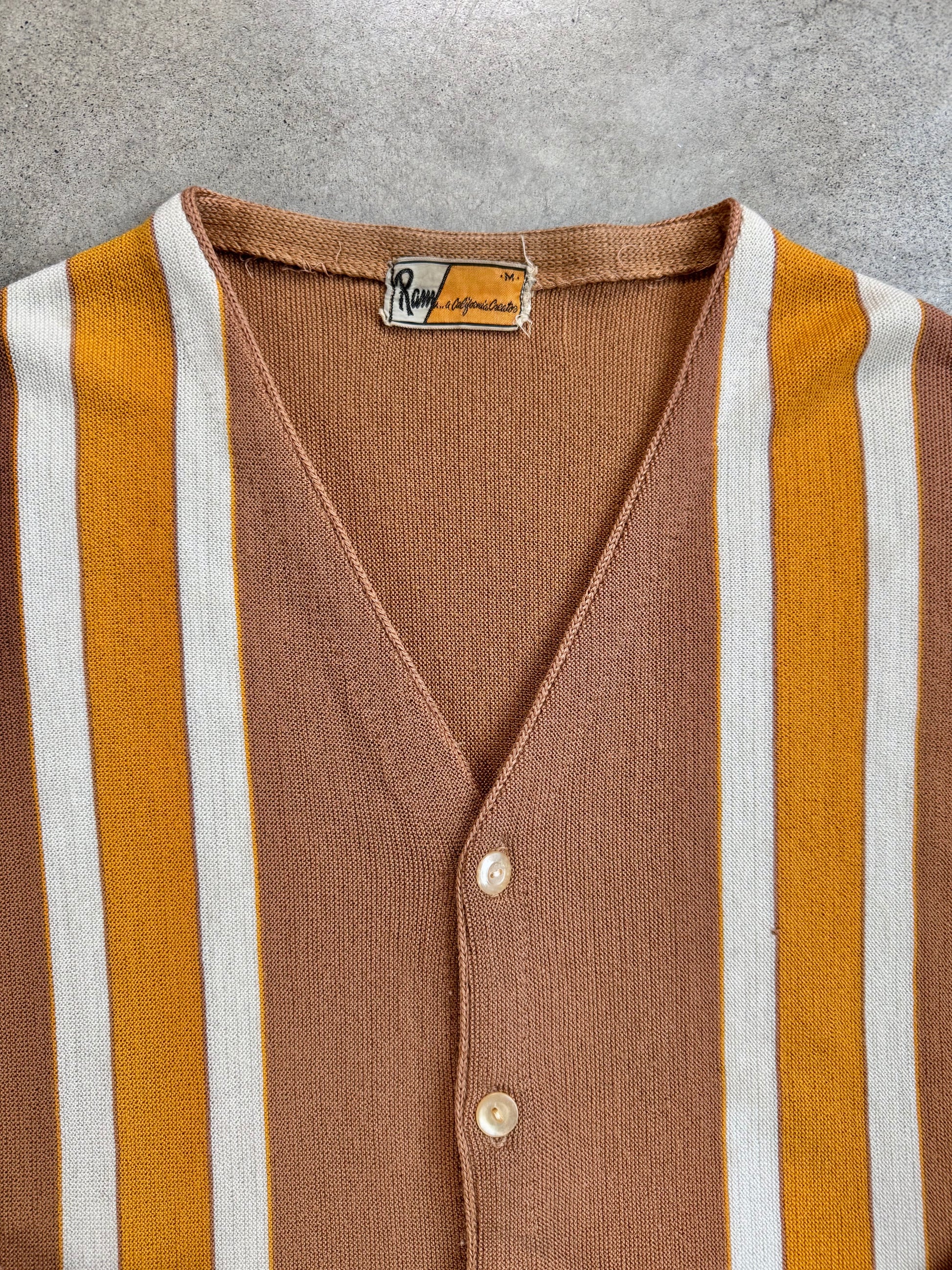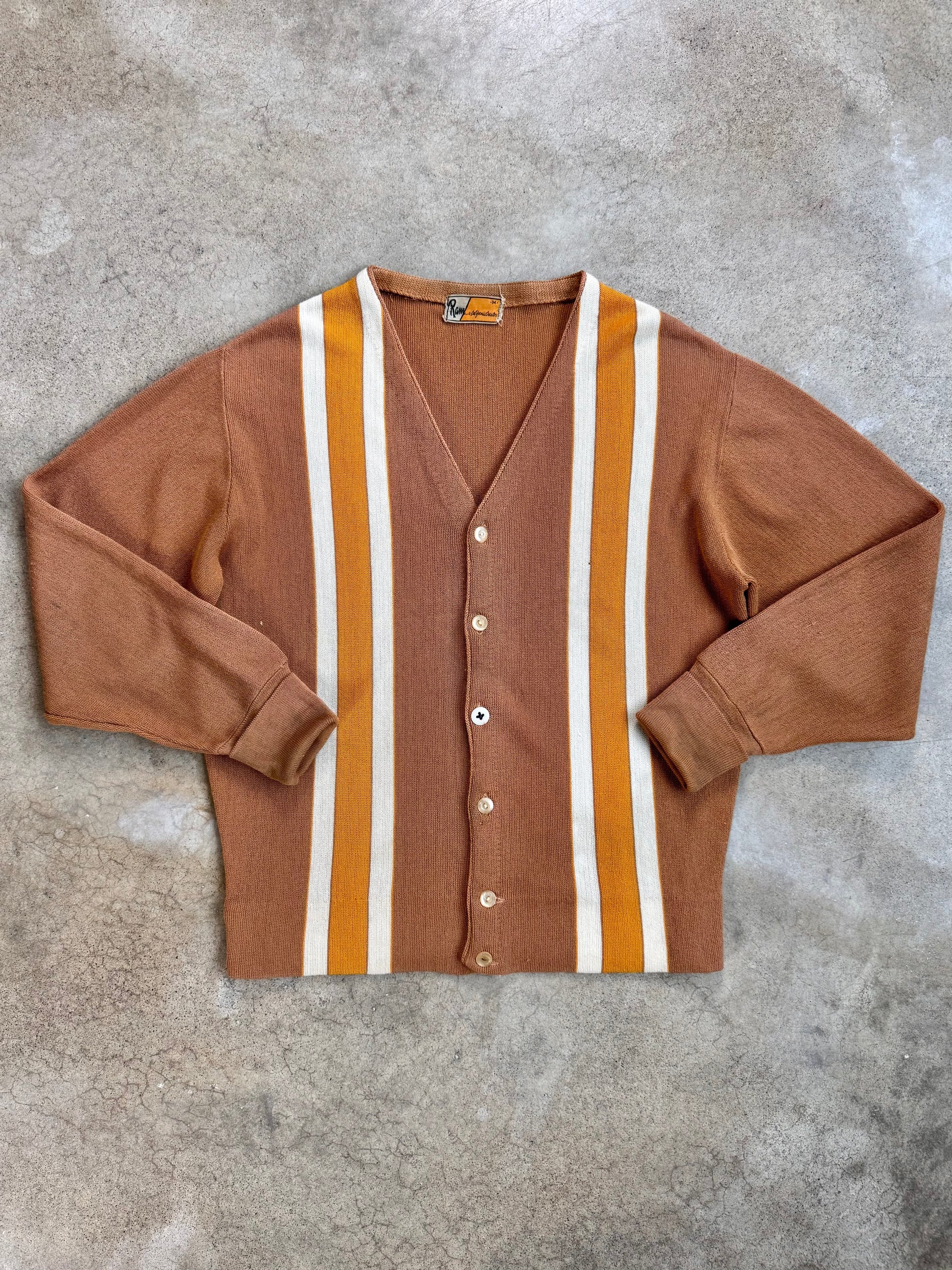 Vintage 1960s Ram California Creator Brown & Orange Striped Cardigan | Medium