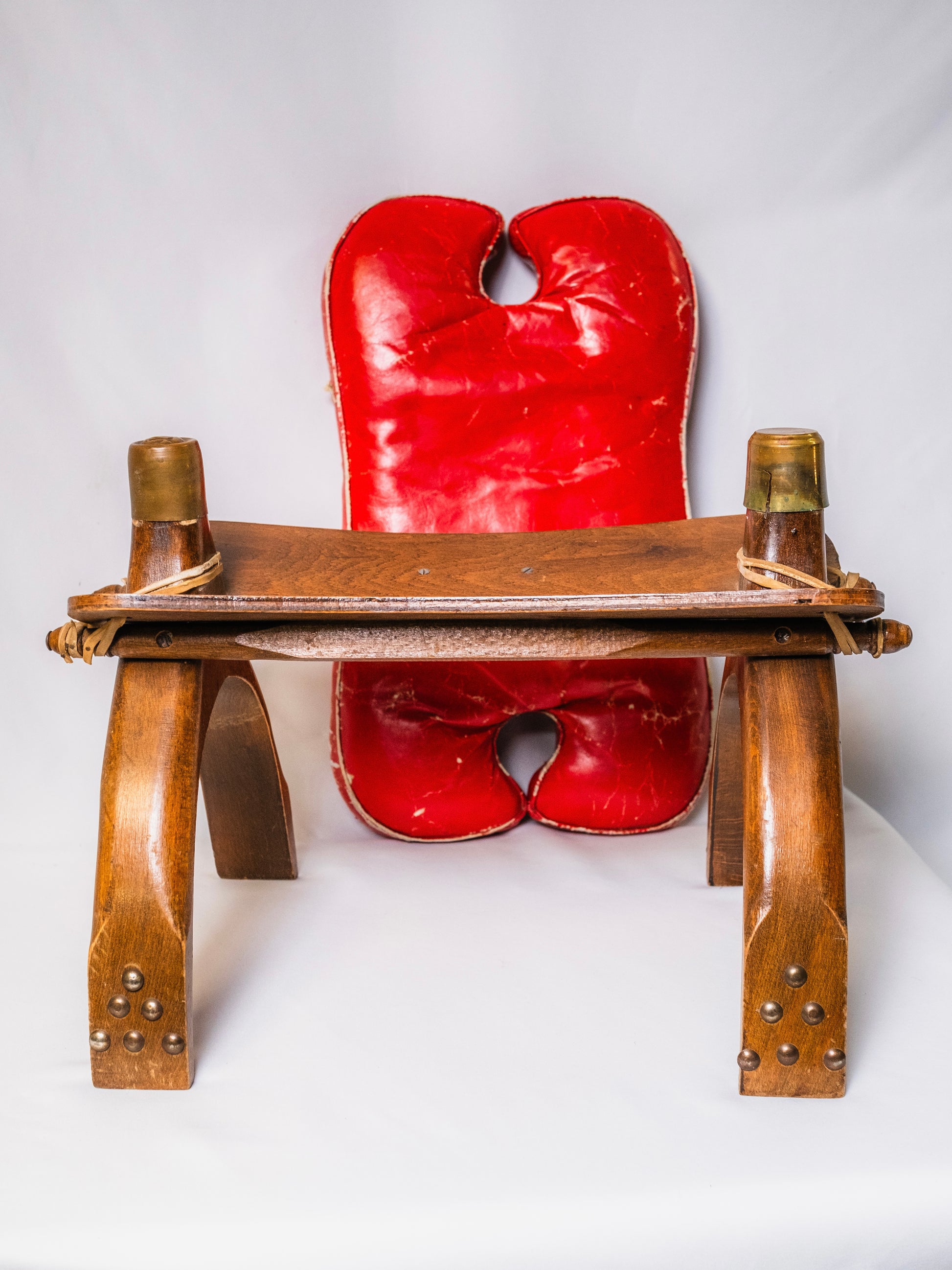 Vintage 1960s Rustic Camel Saddle Footstool.