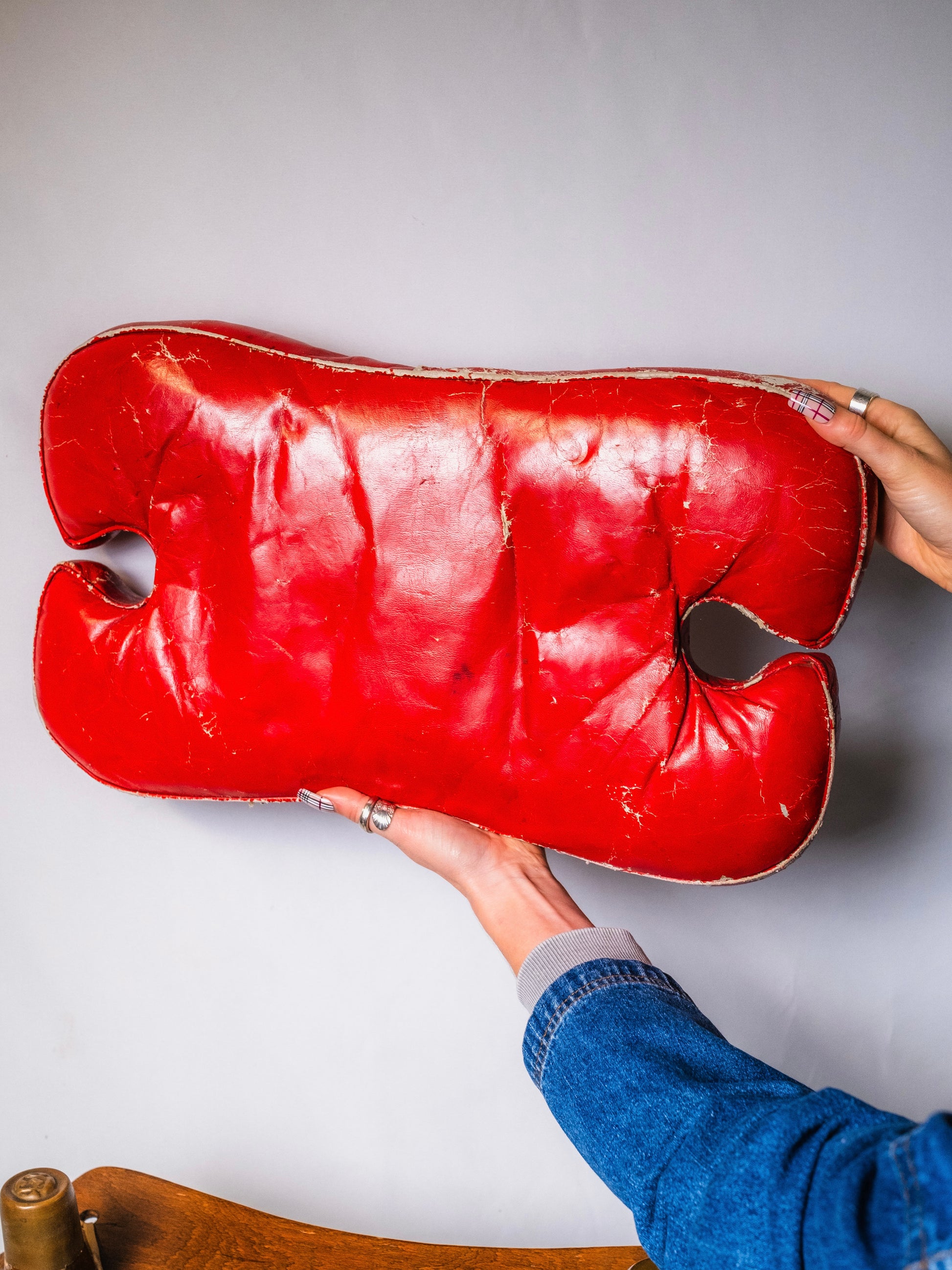 Item Condition - Cushion is worn & there are some light scratches throughout wood (see photos for imperfections).