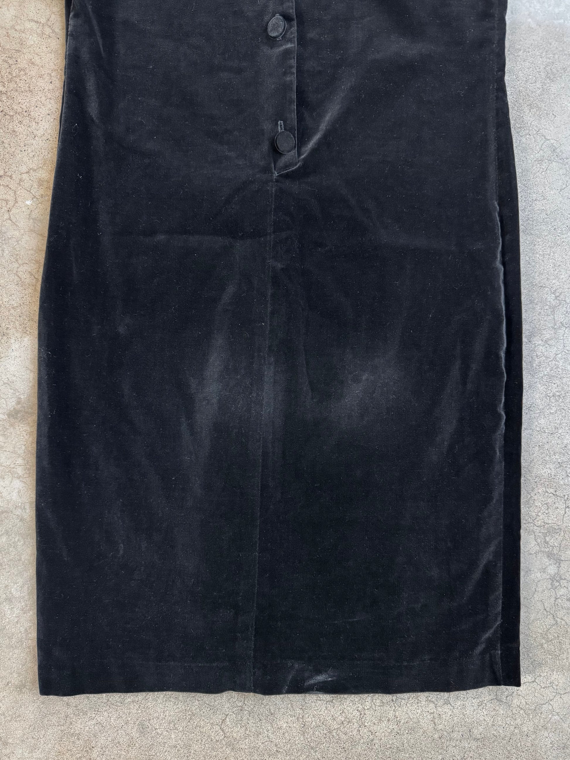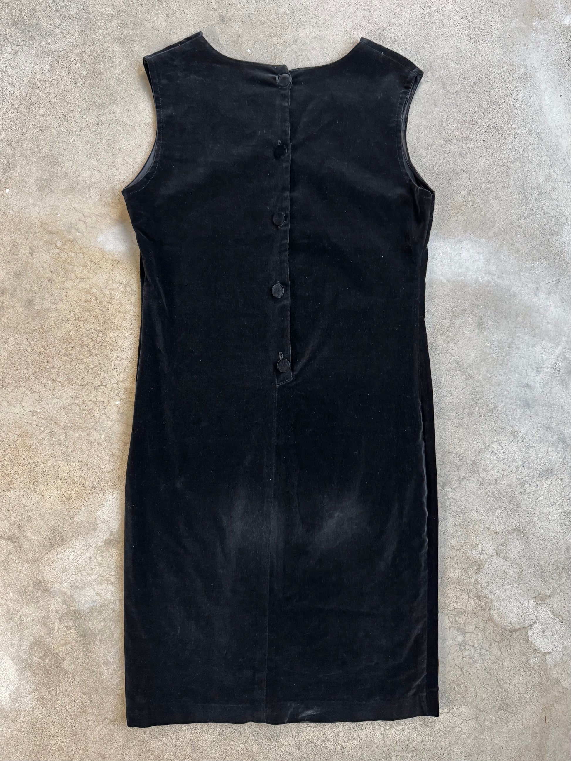 Vintage 1960s Black Velvet V-Neck Sleeveless Dress | S/M