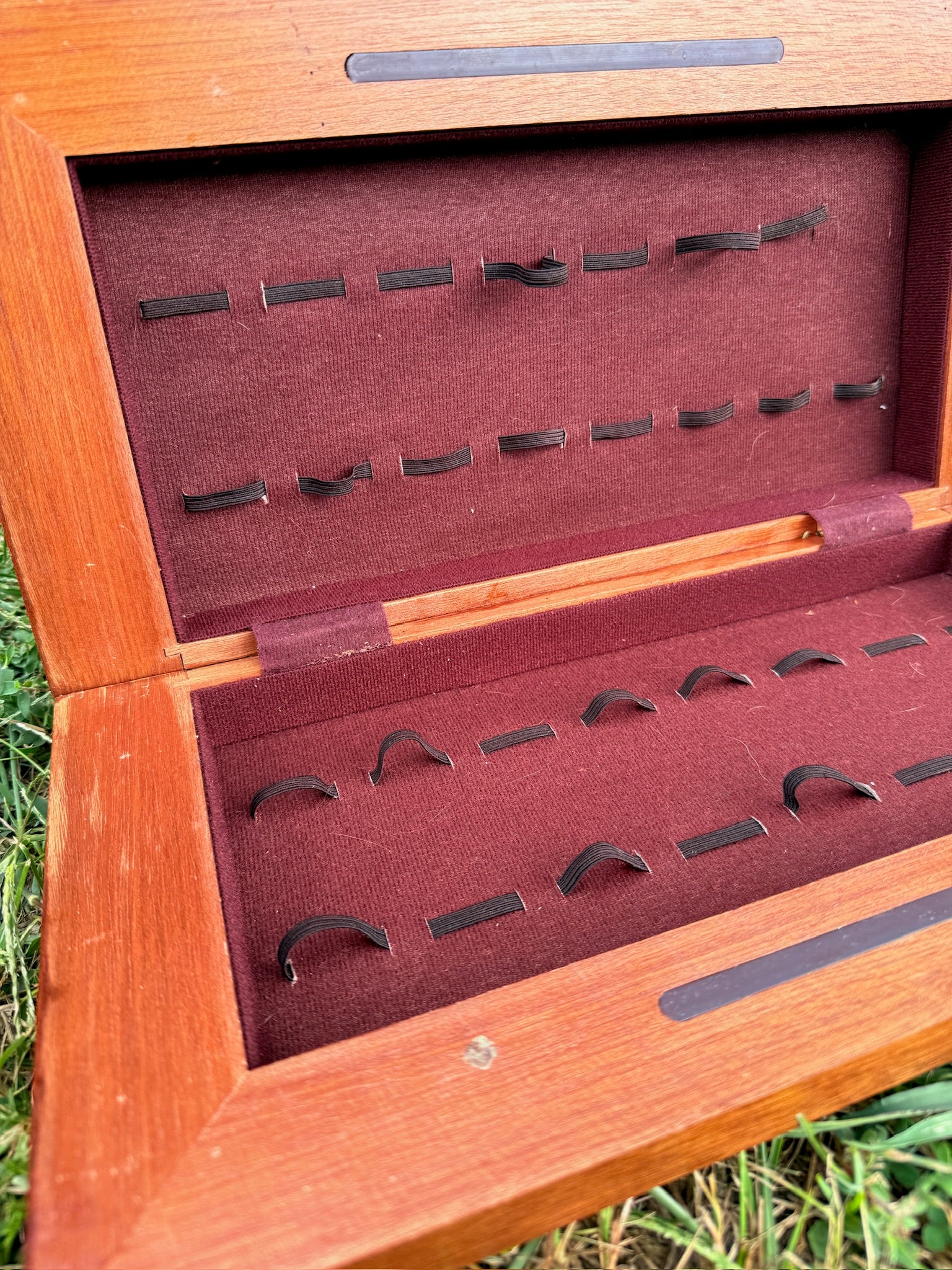 Vintage 1960s Folding Wooden Chess Board w/ Chess Pieces (full set).