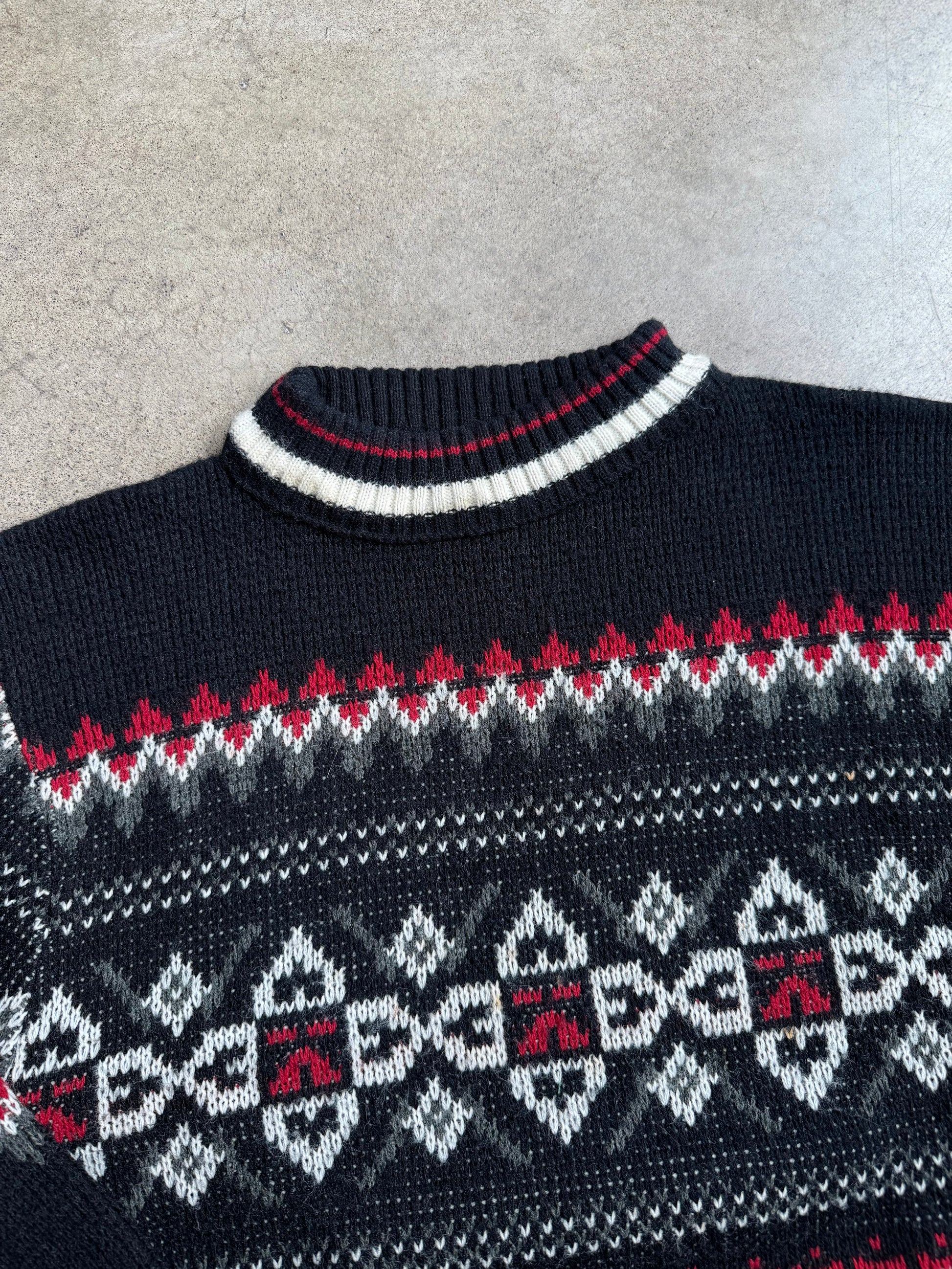 Vintage 1970s Black Fair Isle Mock Neck Sweater | Medium