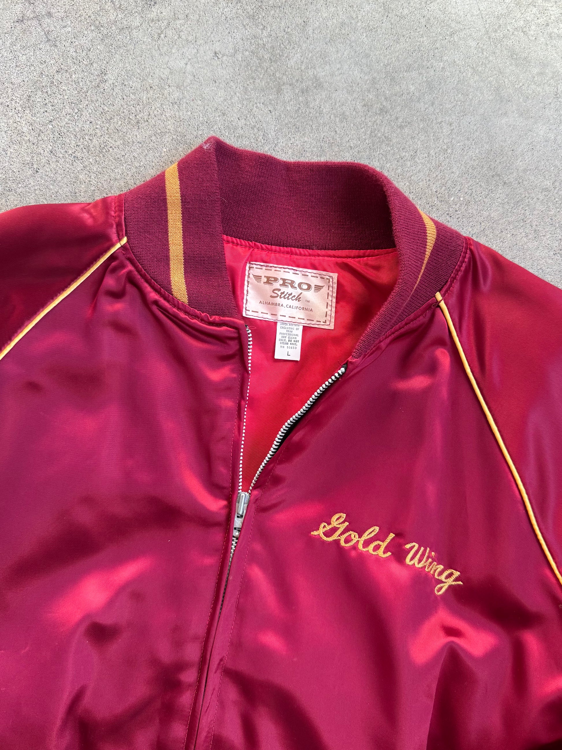 Vintage 1970s Burgundy "Gold Wing" Racing Satin Bomber Jacket | Large