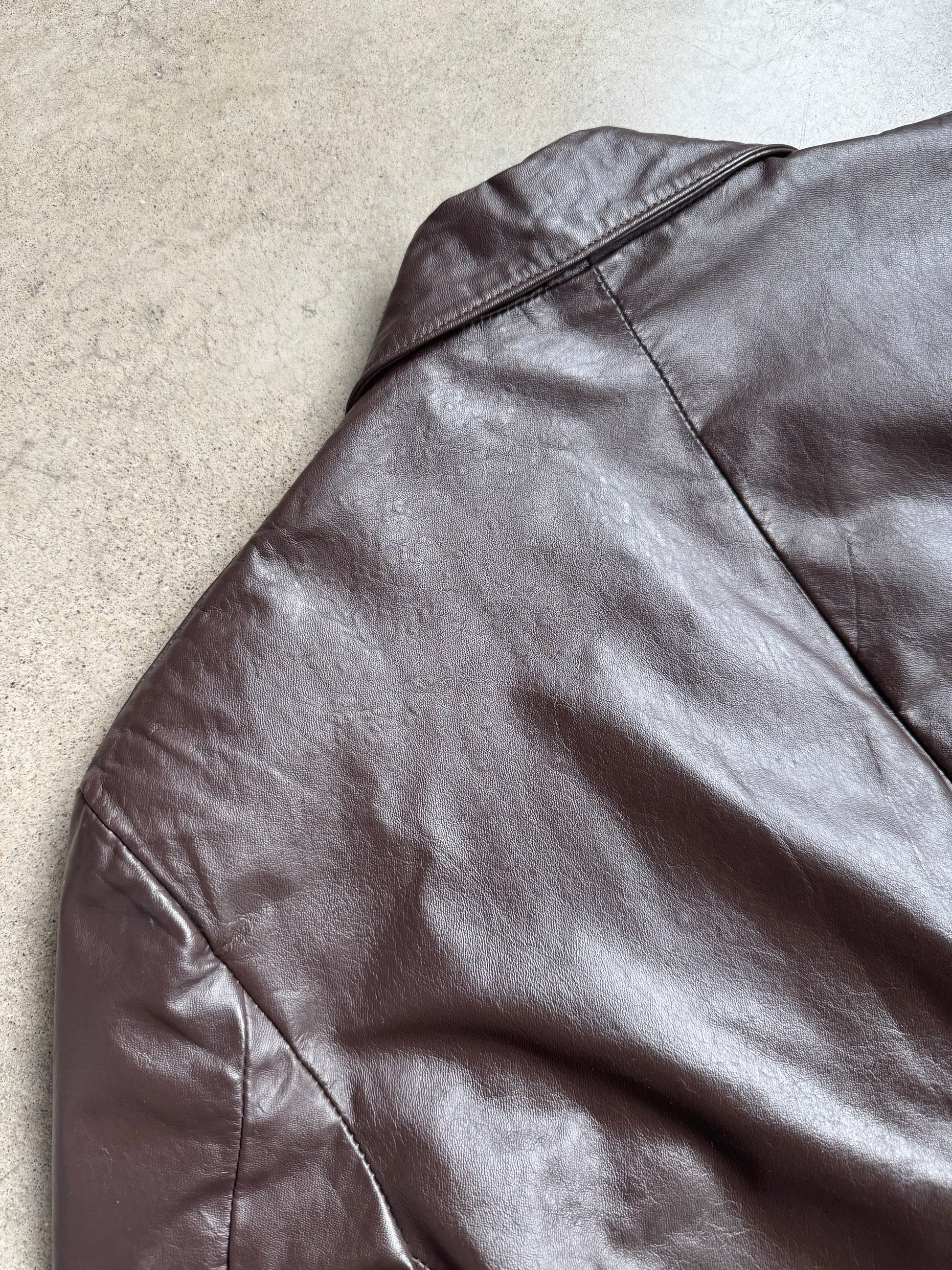 Vintage 1970s Clipper Mist Brown Genuine Leather Blazer Jacket. Fully lined in satin acetate fabric.