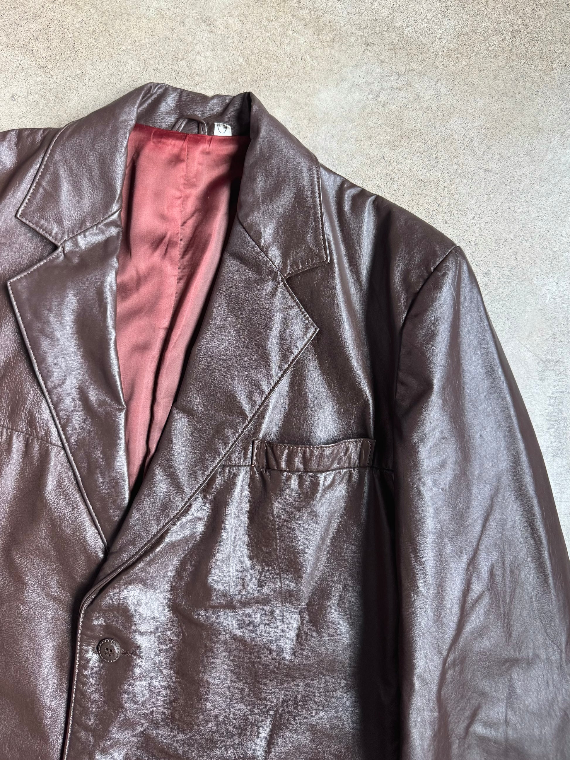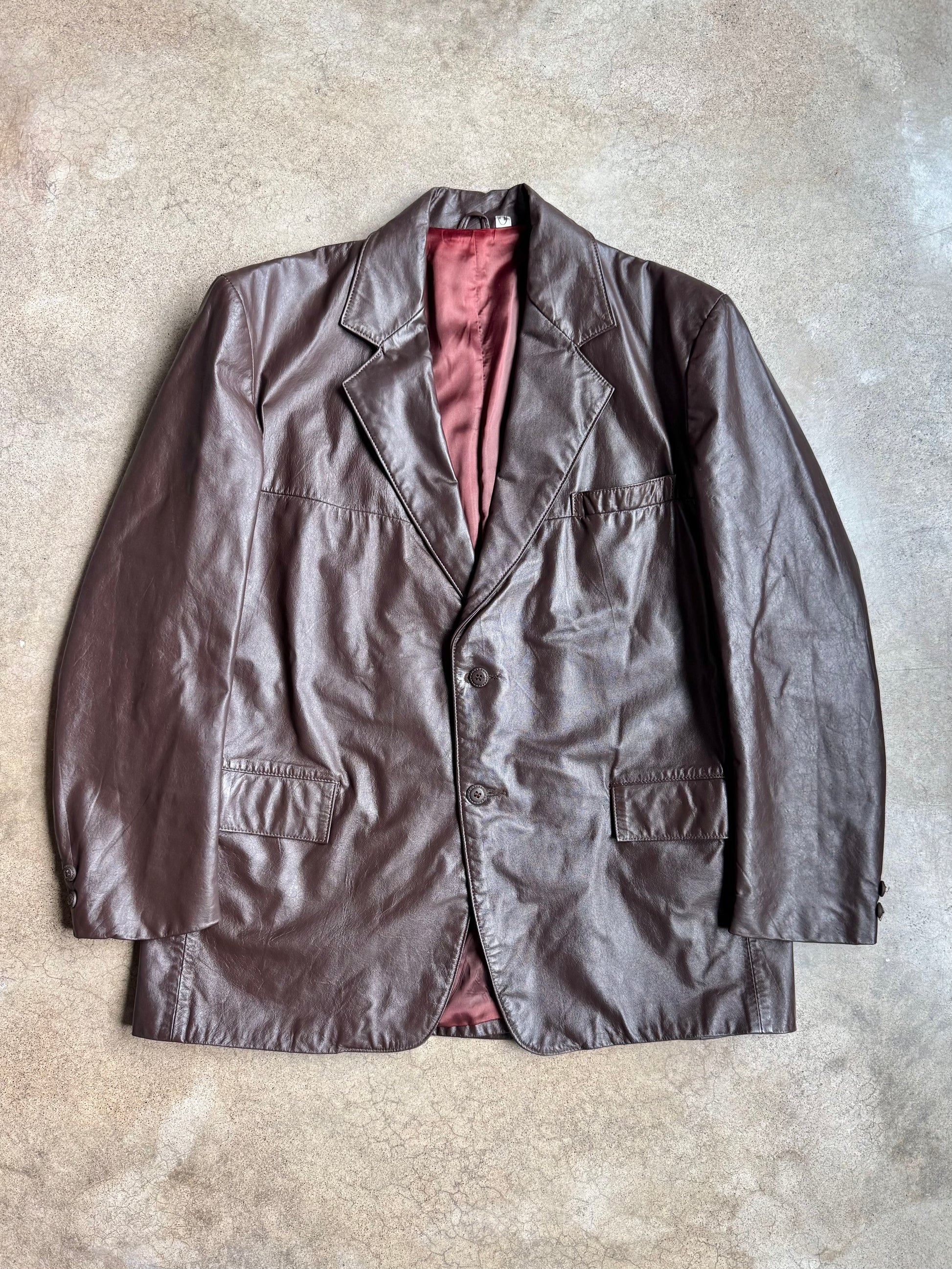 Vintage 1970s Clipper Mist Brown Leather Blazer Jacket | 44R