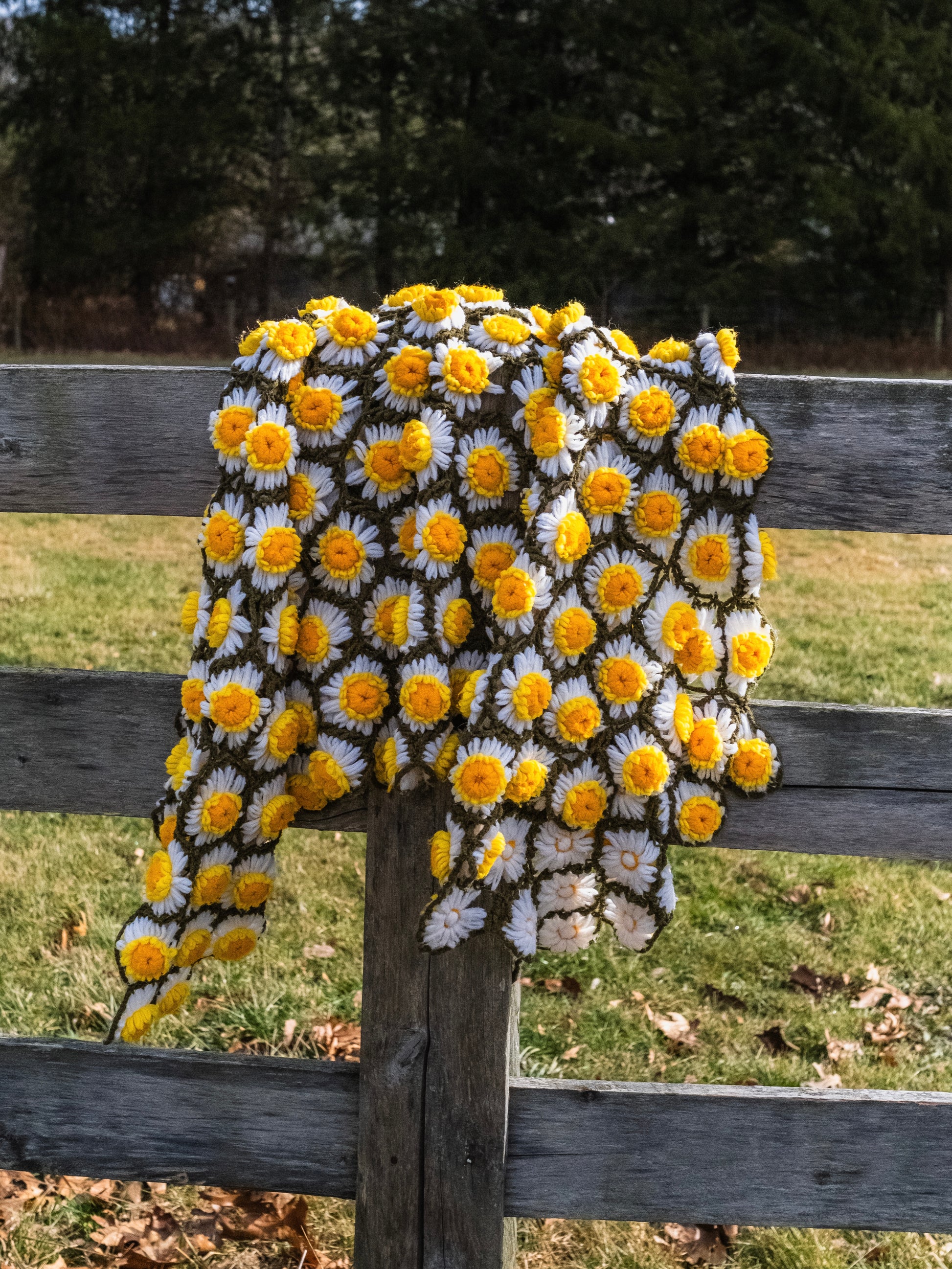 Vintage 1970s Daisy Flower Chain Afghan Throw Blanket