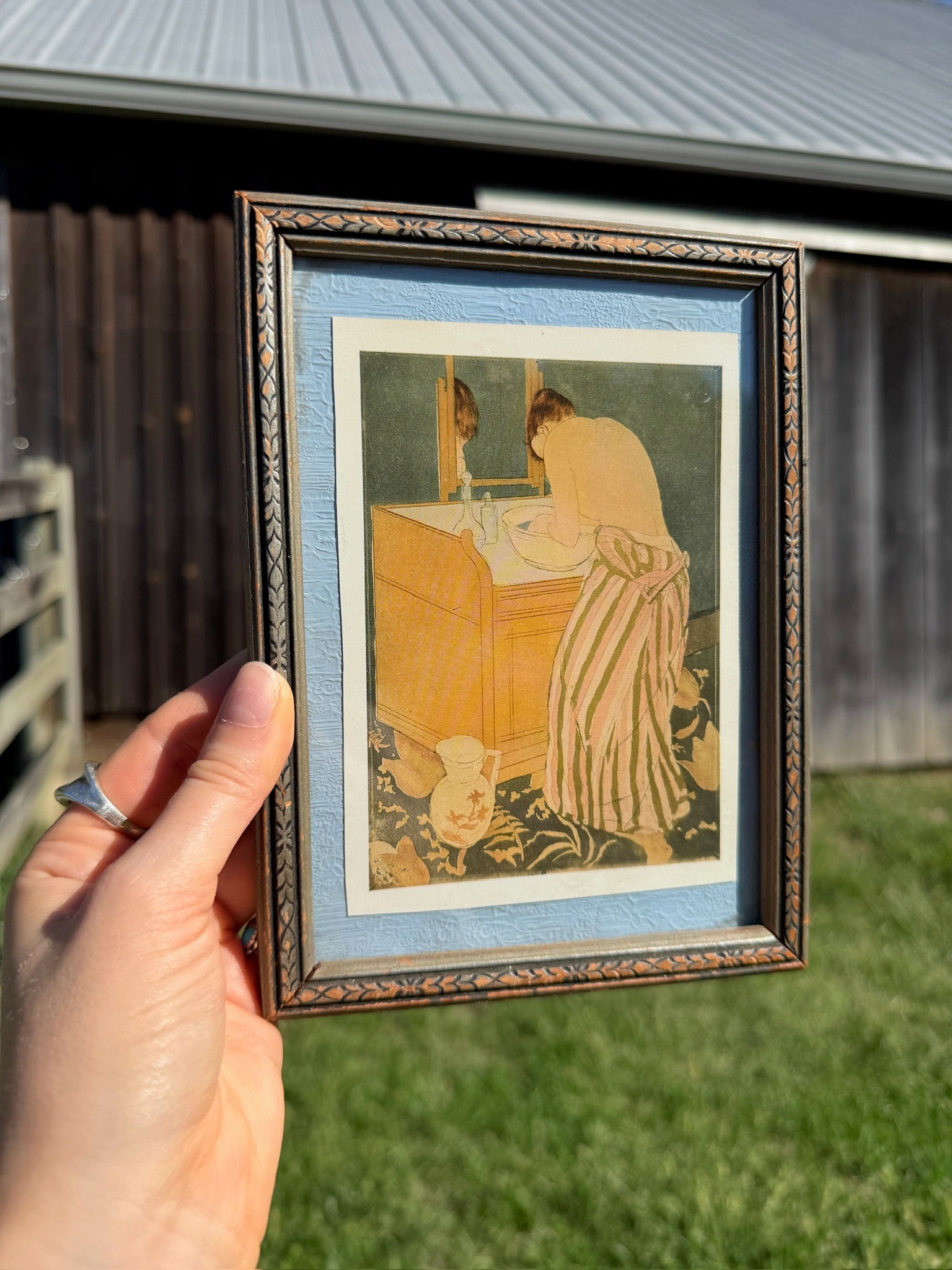 Vintage 1970s Framed Mary Cassatt "Woman Bathing" Print Art
