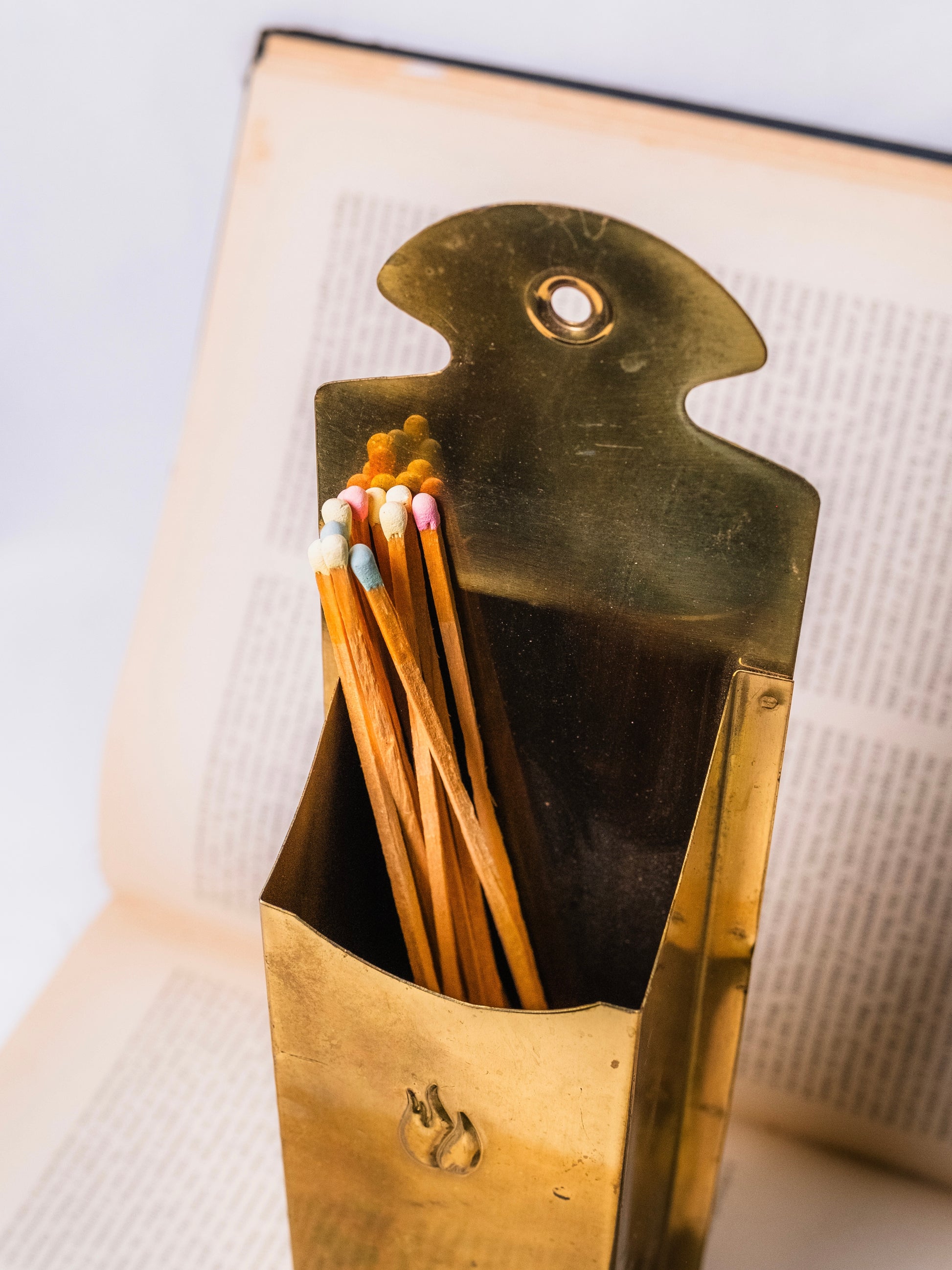 Vintage 1970s Gold Metal Fireplace Matchstick Holder