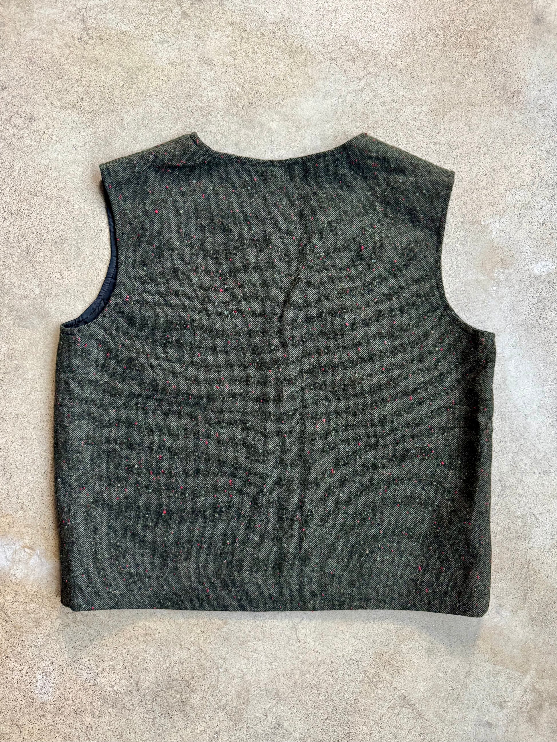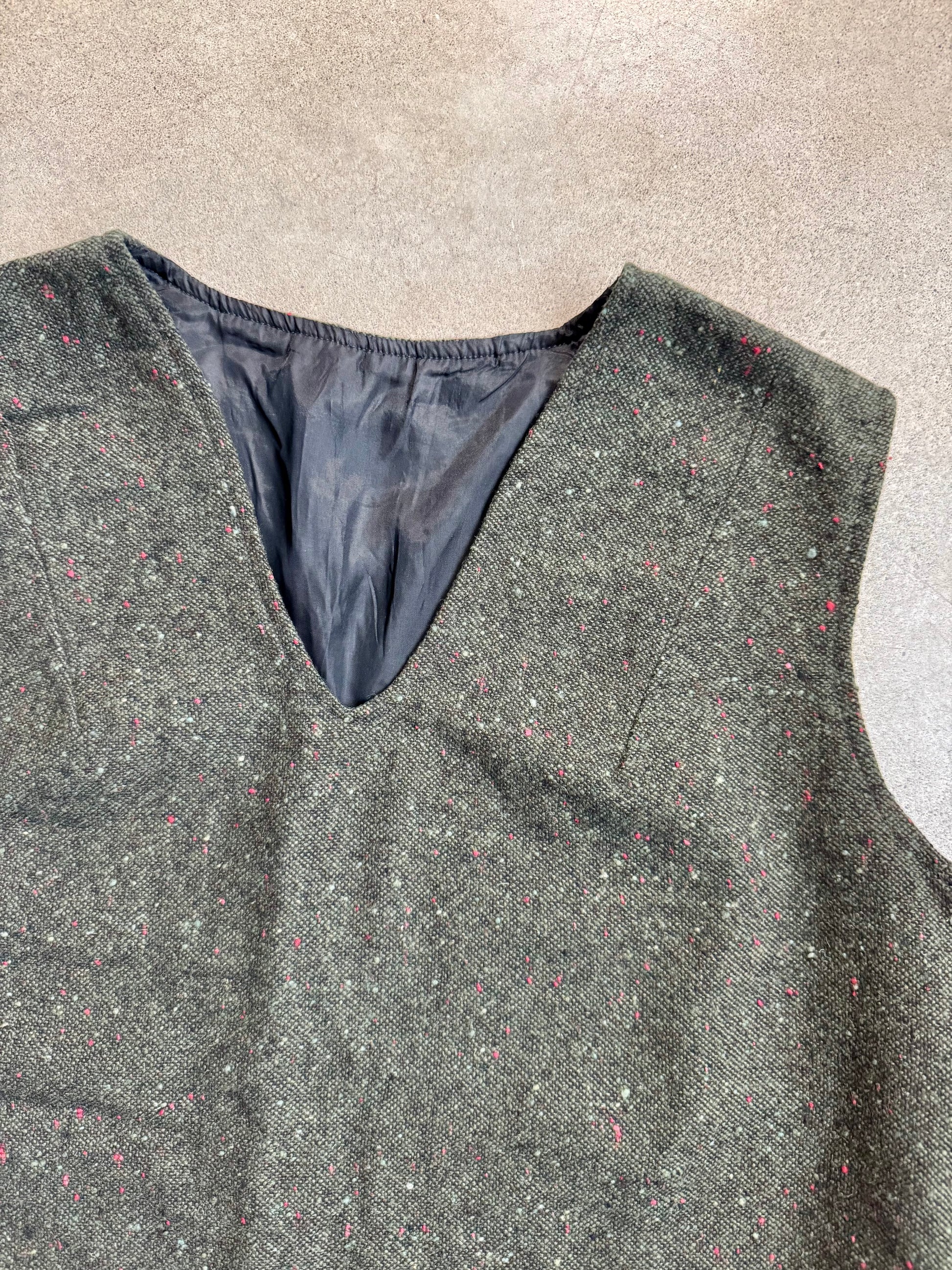 Vintage 1970s Handmade Green Speckled Wool Sleeveless Top | Large