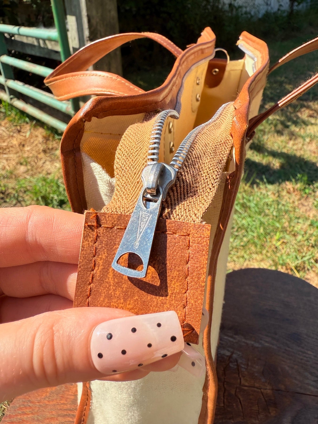 Vintage 1970s Gucci-Style Striped Canvas Top Handle Structured Tote Bag. Features a zipper closure at top.