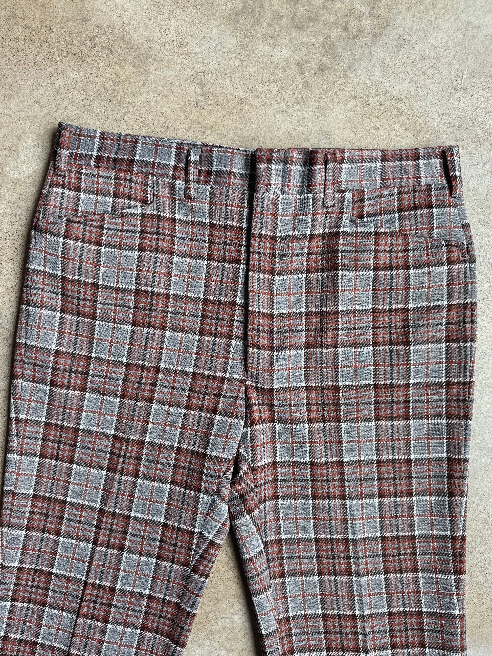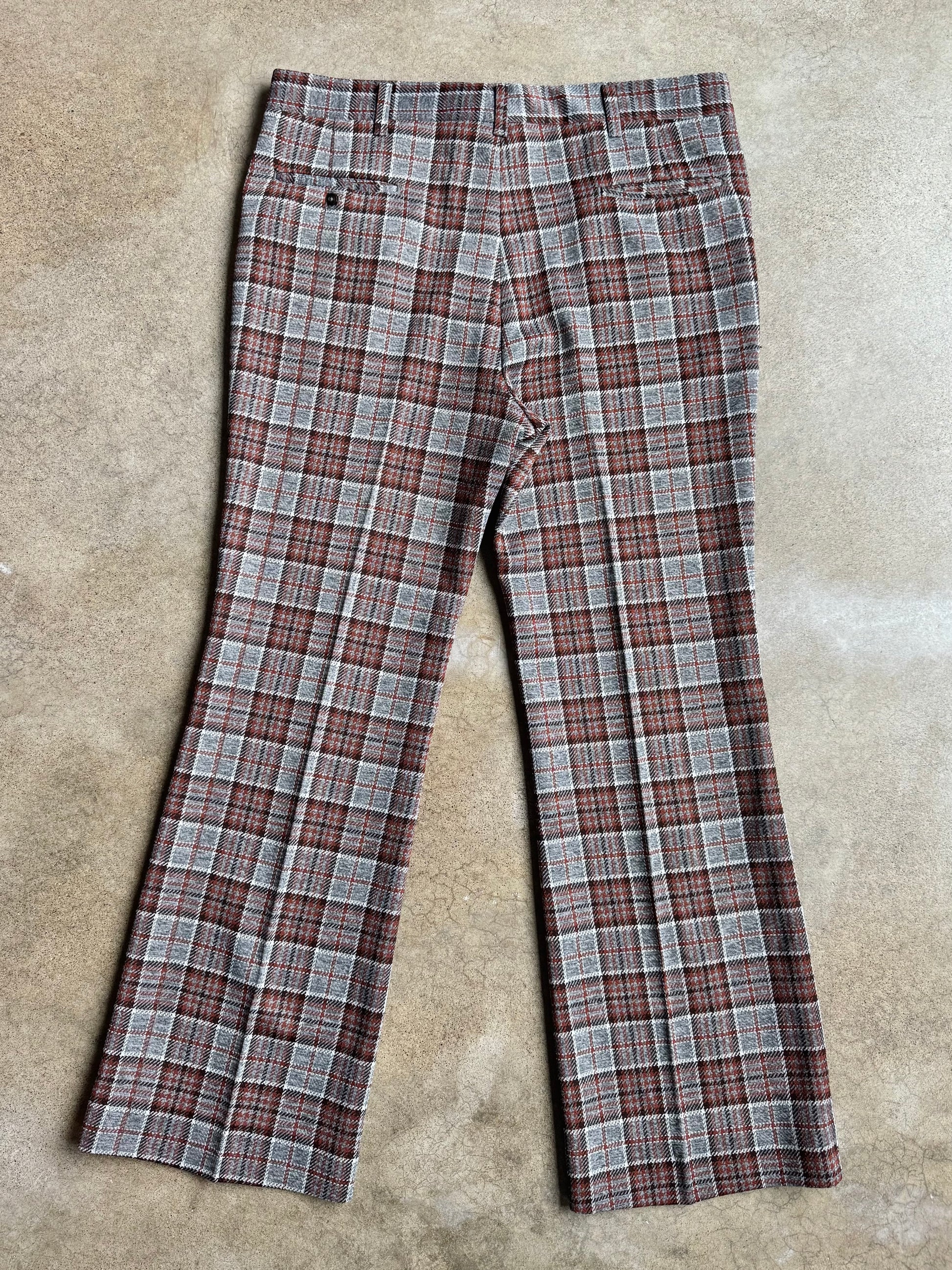 Vintage 1970s Haggar Grey & Brown Plaid Flared Trousers | Waist 38”