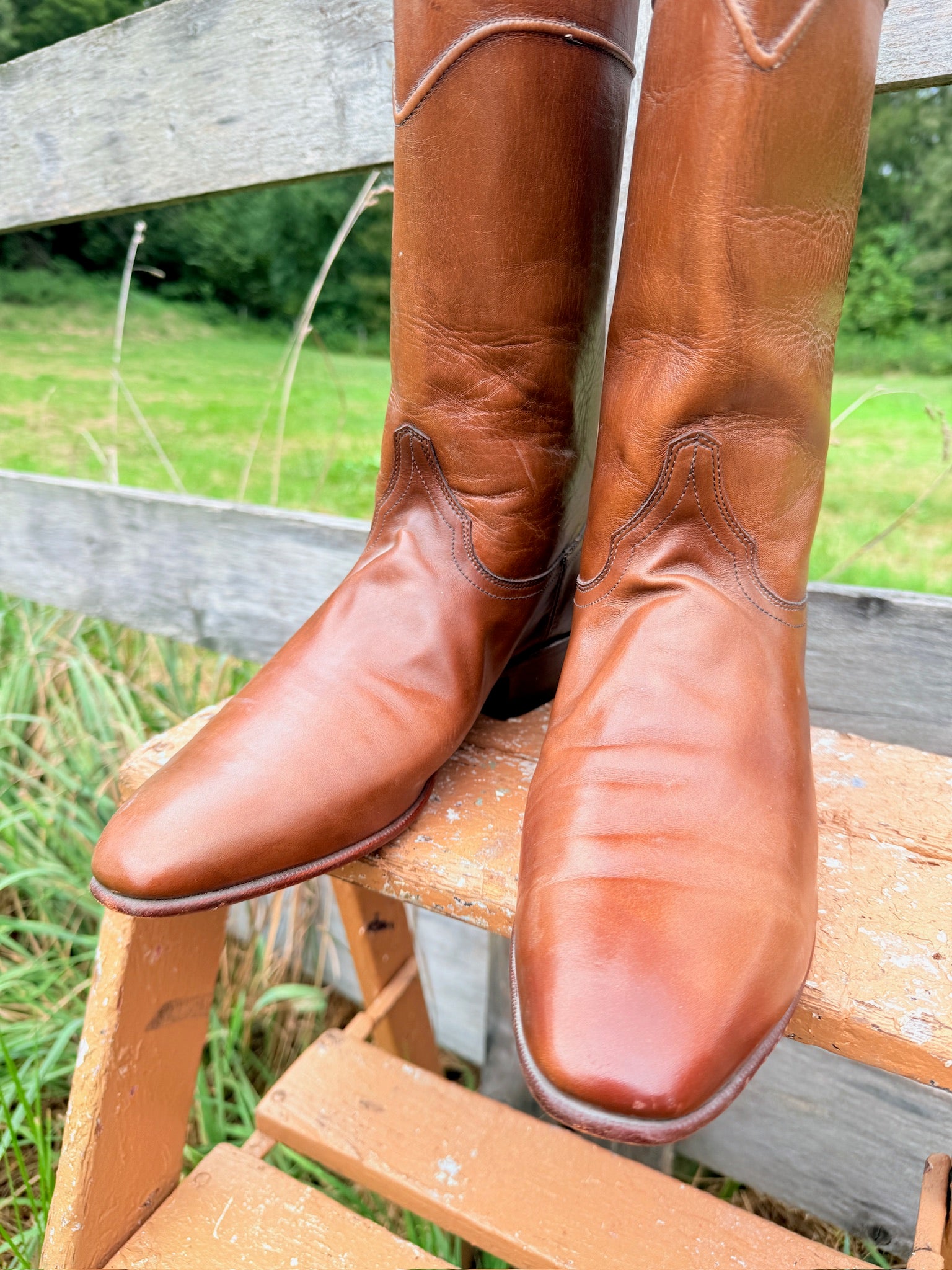 Vintage 1970s Justin Brown Leather Western Roper Cowboy Boots.