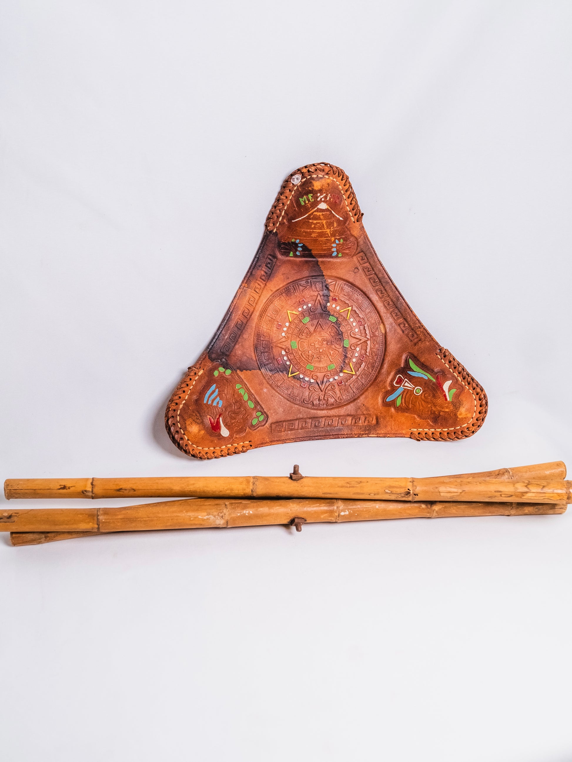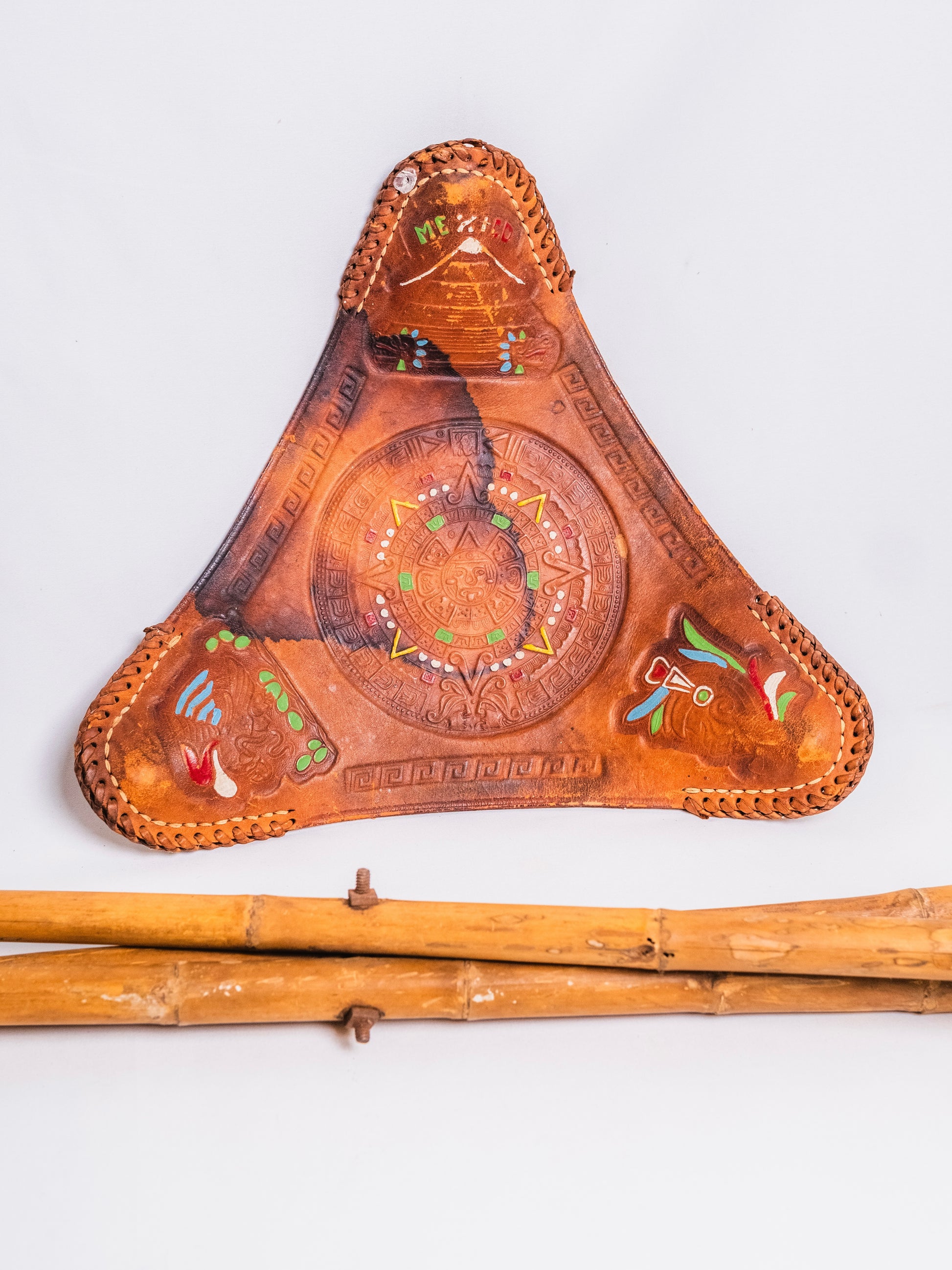 Vintage 1970s Mexican Tooled Leather Folding Camp Stool
