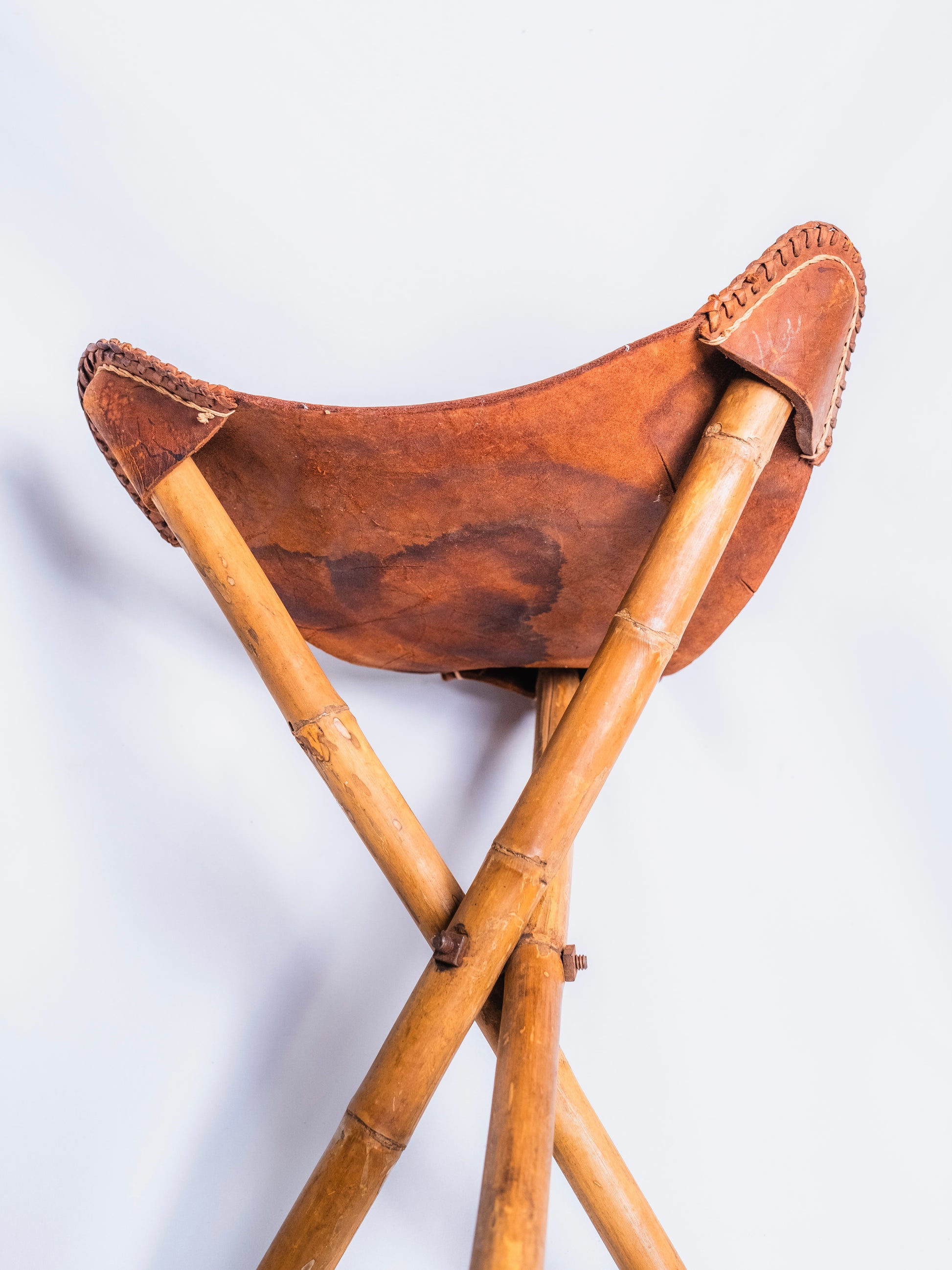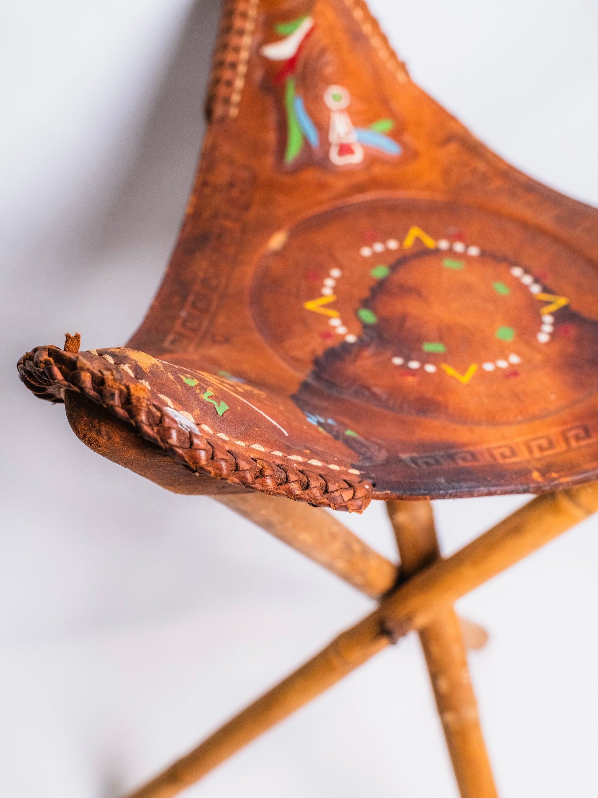 Vintage 1970s Mexican Tooled Leather Folding Camp Stool.
