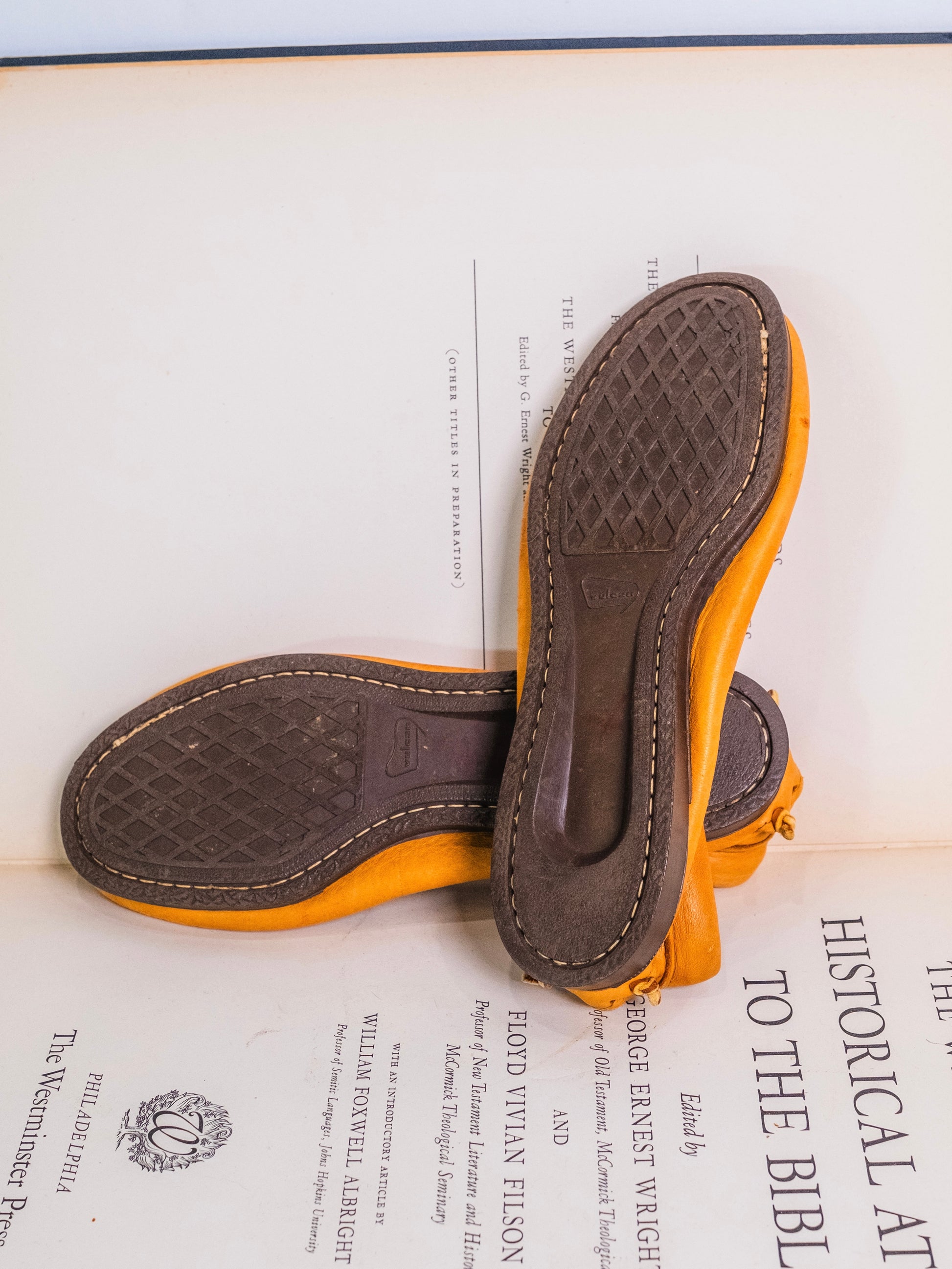 Vintage 1970s Tan Leather Hardsole Moccasins.