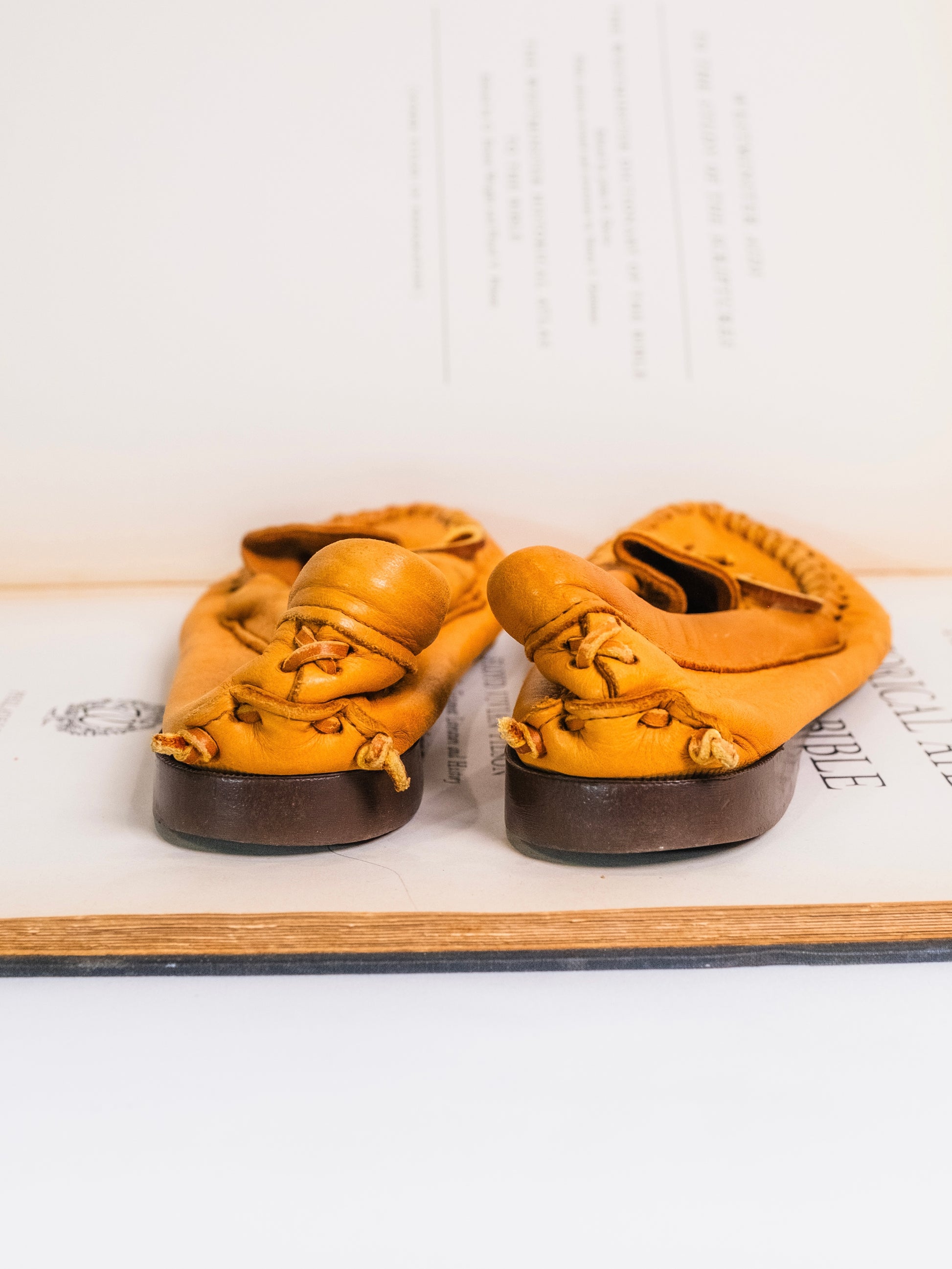 Vintage 1970s Tan Leather Hardsole Moccasins