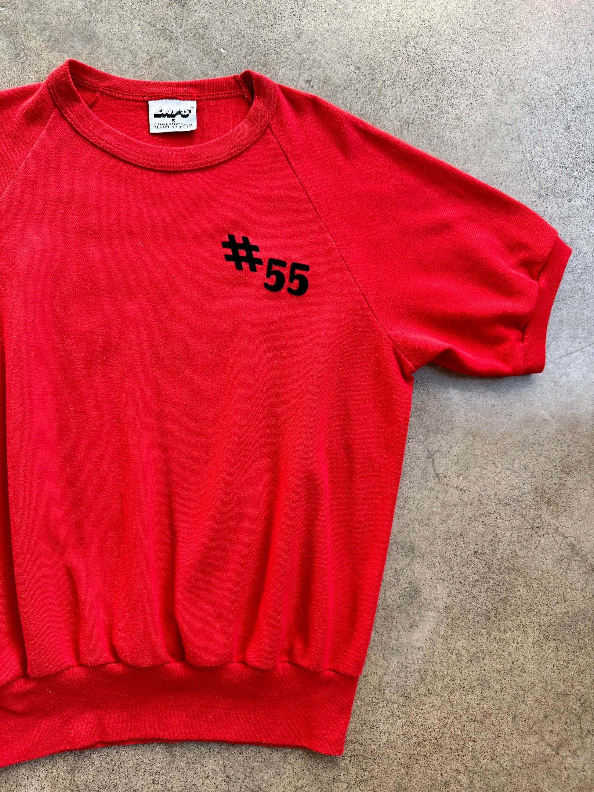Vintage 1970s Red Short Sleeve Crewneck Sweatshirt w/ Black Felt Lettering “Demons Super Bowl Champs”.