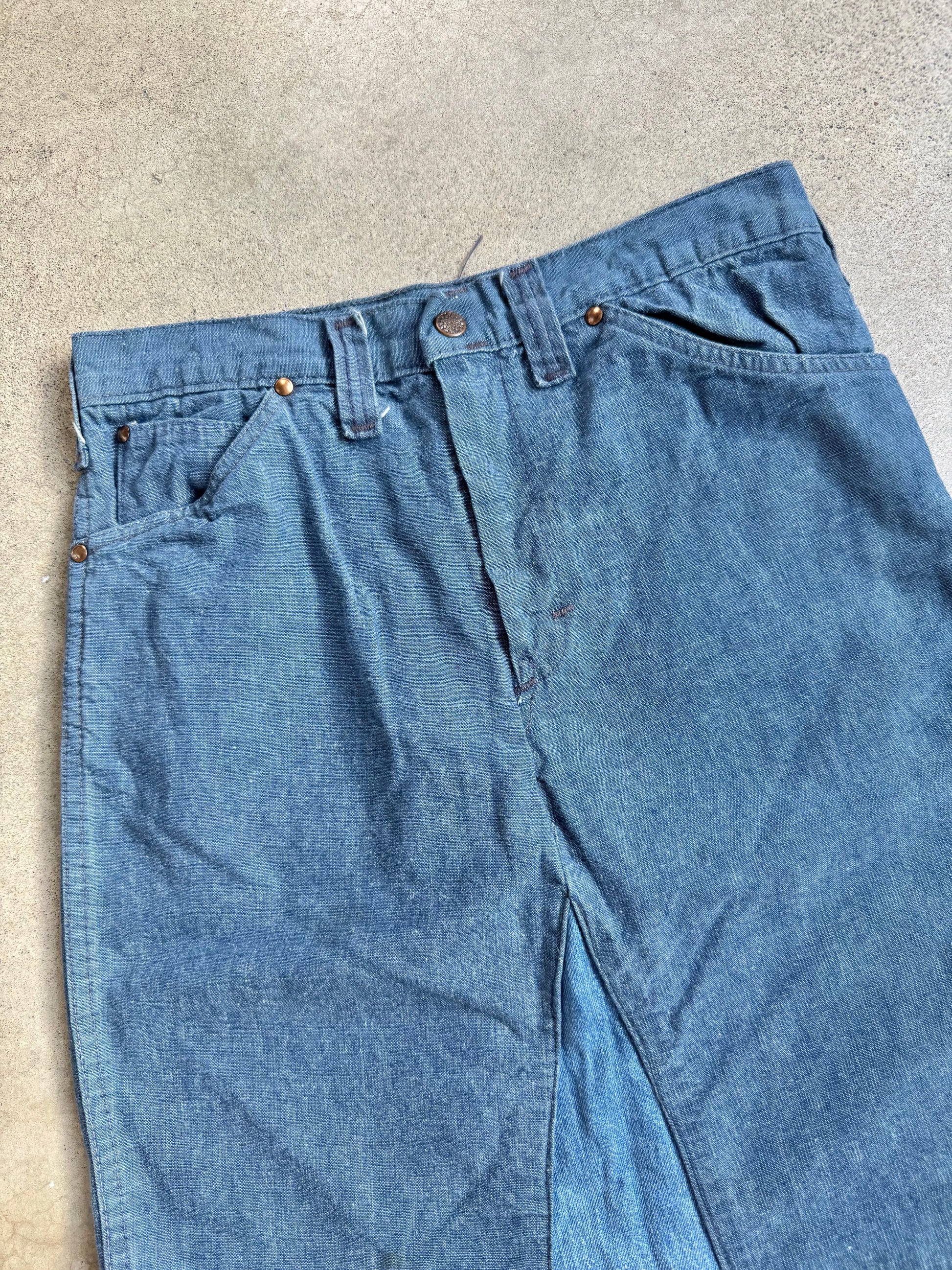 Vintage 1970s Reworked Navy Dungaree Denim Maxi Skirt | Waist 29”
