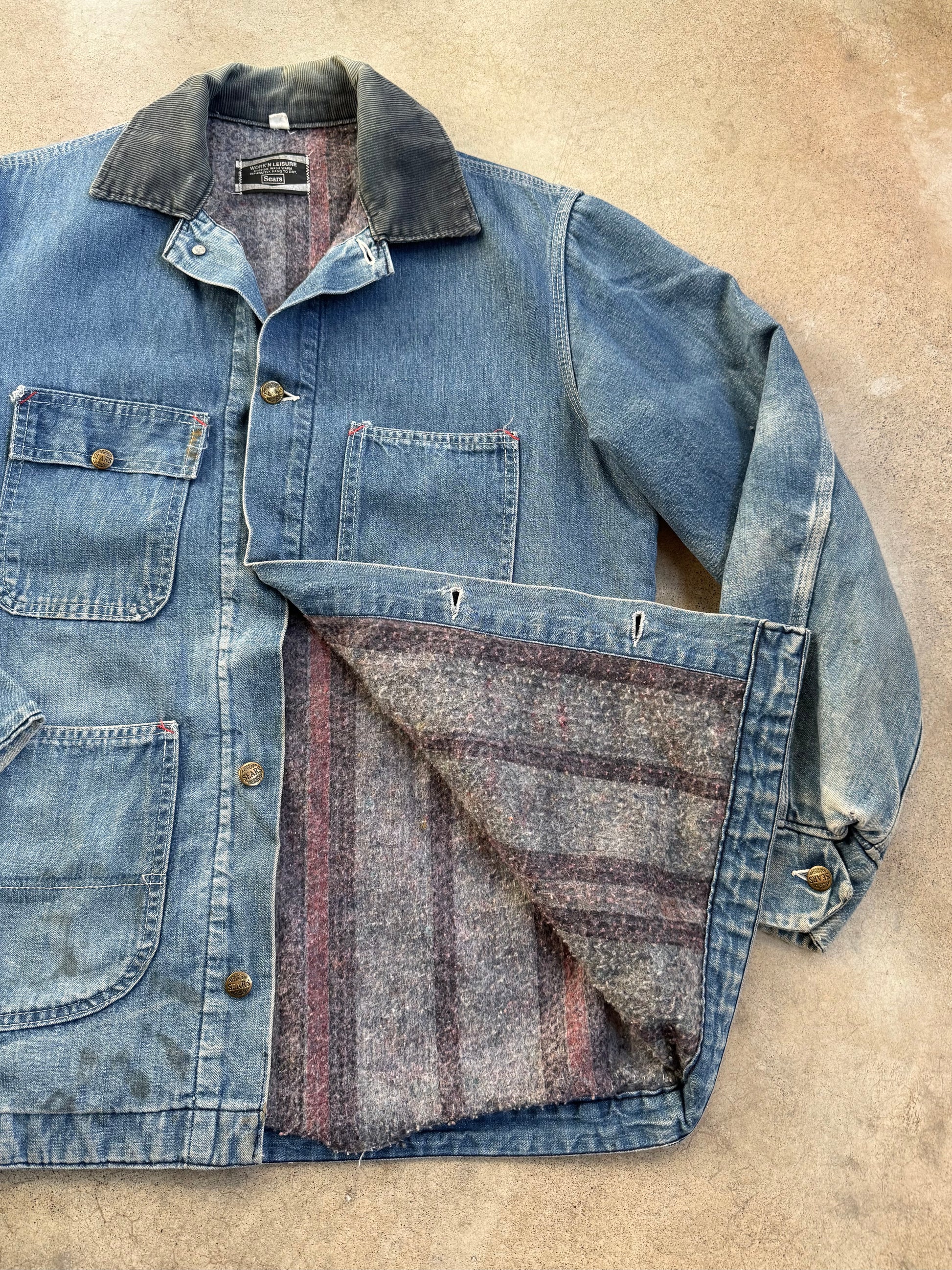 Vintage 1970s Sears Work ‘N’ Leisure Blanket Lined Denim Barn Jacket / Chore Coat.