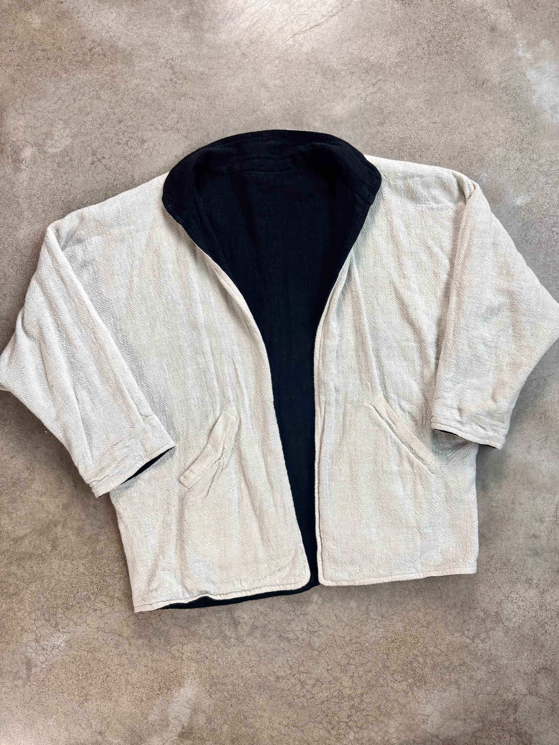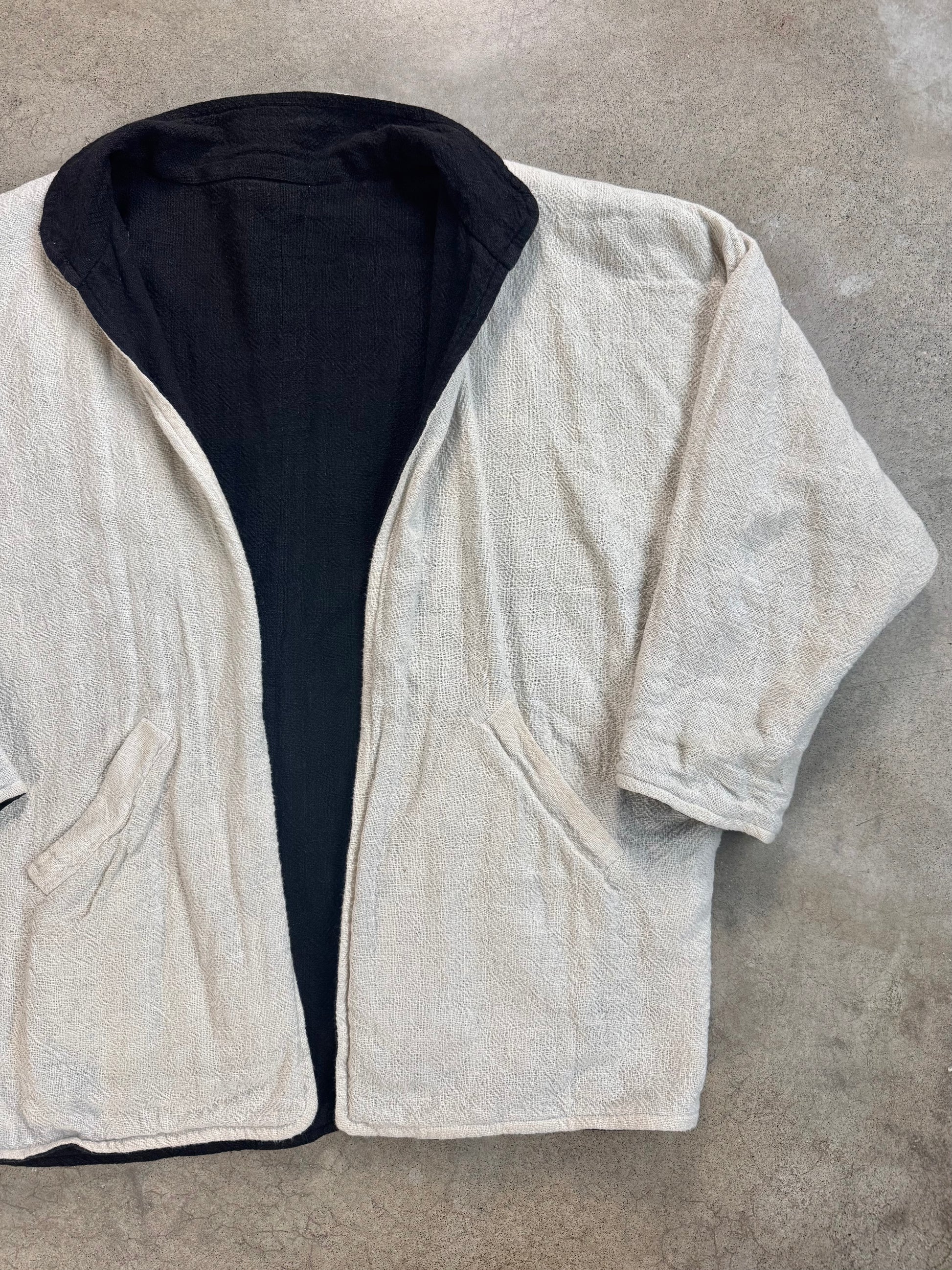 Vintage 1980s Sangam Imports Ltd. Reversible Cream & Black Cotton Batwing Sleeve Jacket. Made in India. Thick woven 100% cotton fabric.