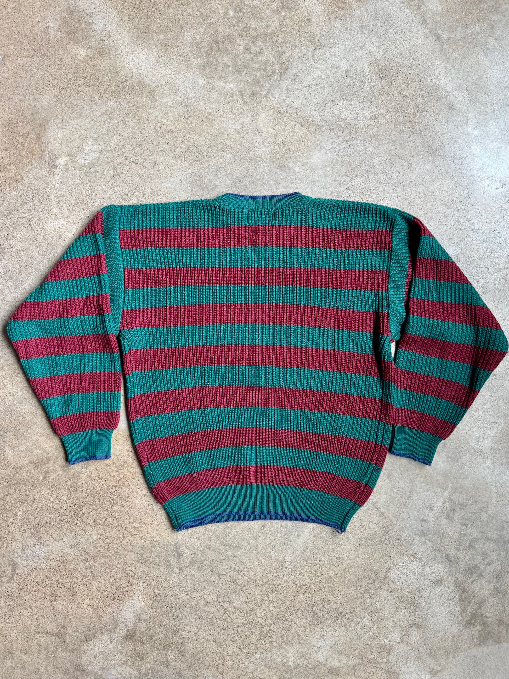Vintage 1980s Trend Basics Burgundy & Green Striped Crewneck Sweater | XL