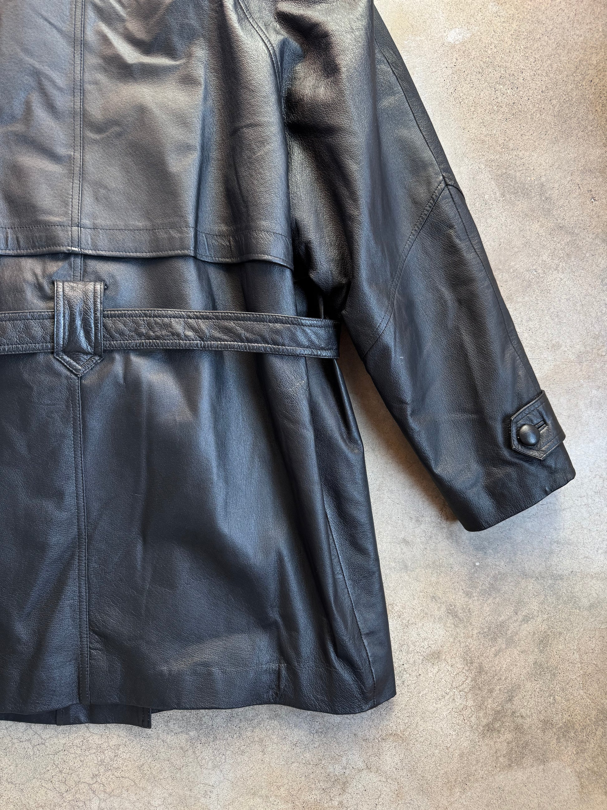 Vintage 1980s Middlebrook Park Black Leather Belted Coat | Large
