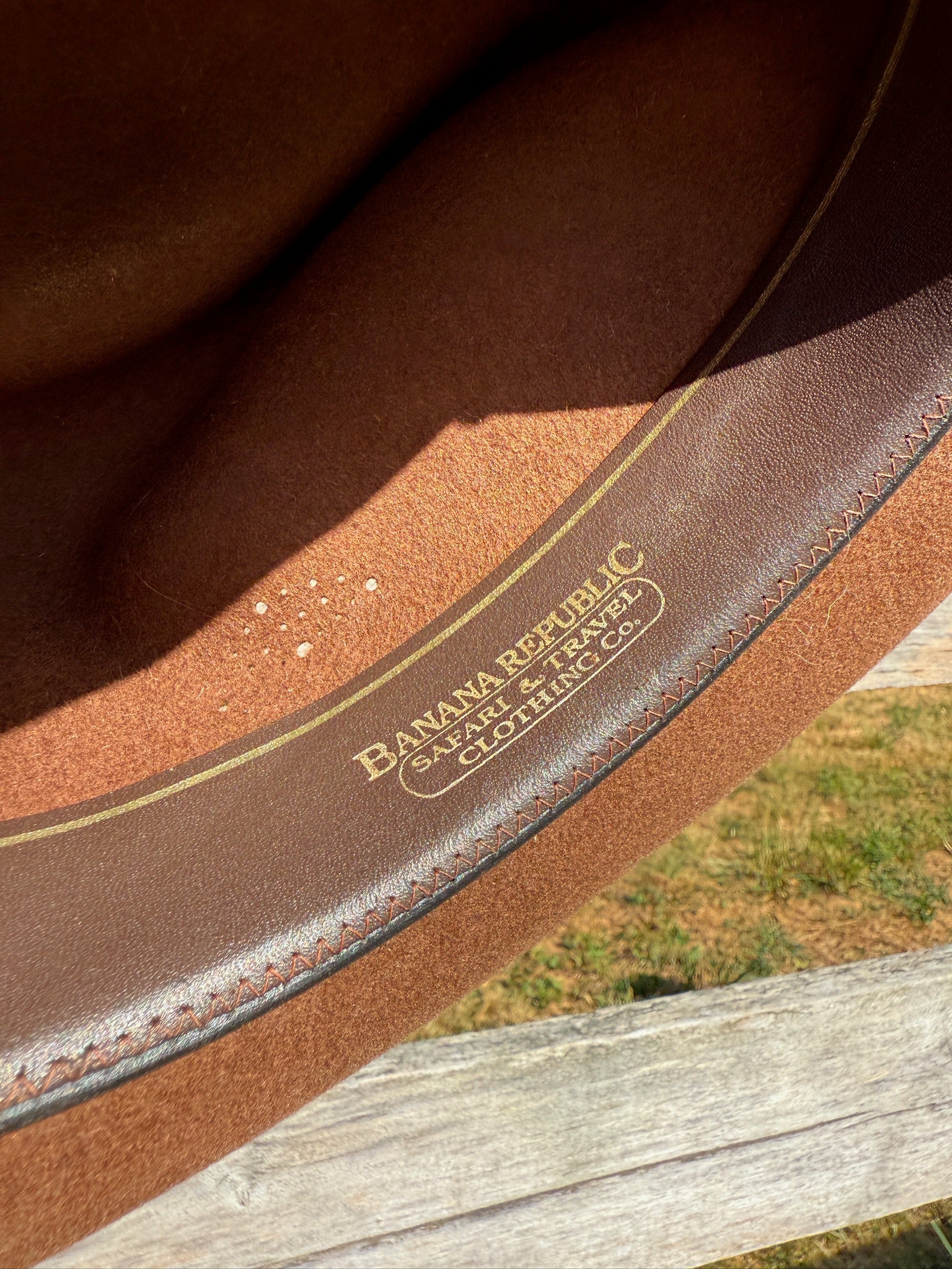 Vintage 1980s Banana Republic Brown Felt Wool Fedora Safari Hat.