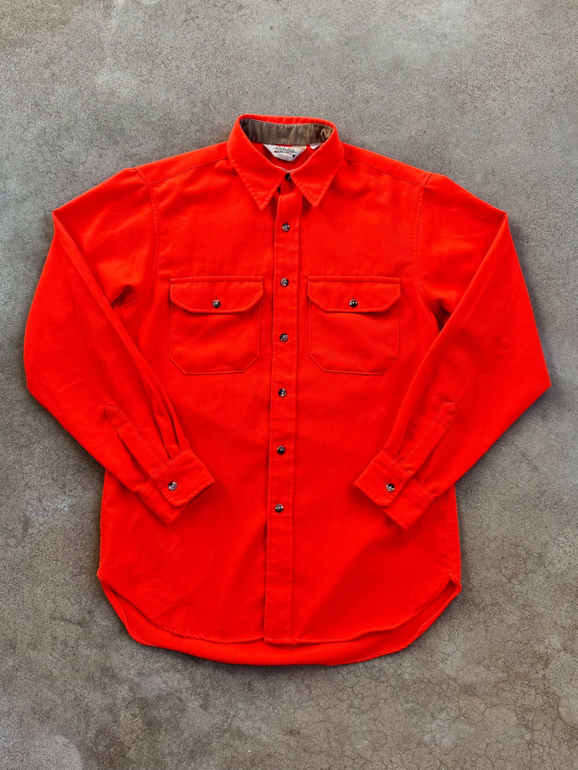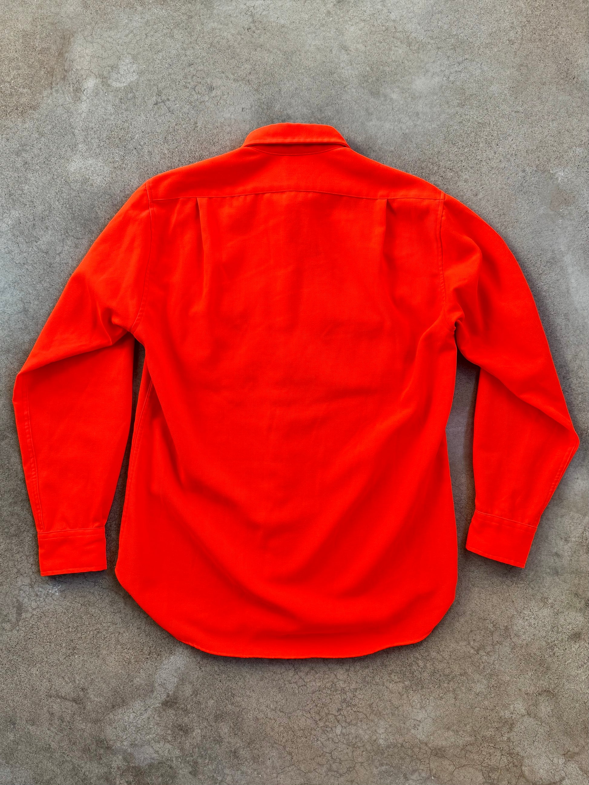 Vintage 1980s Cabela’s Blaze Orange Button-Up Utility Hunting Shirt.