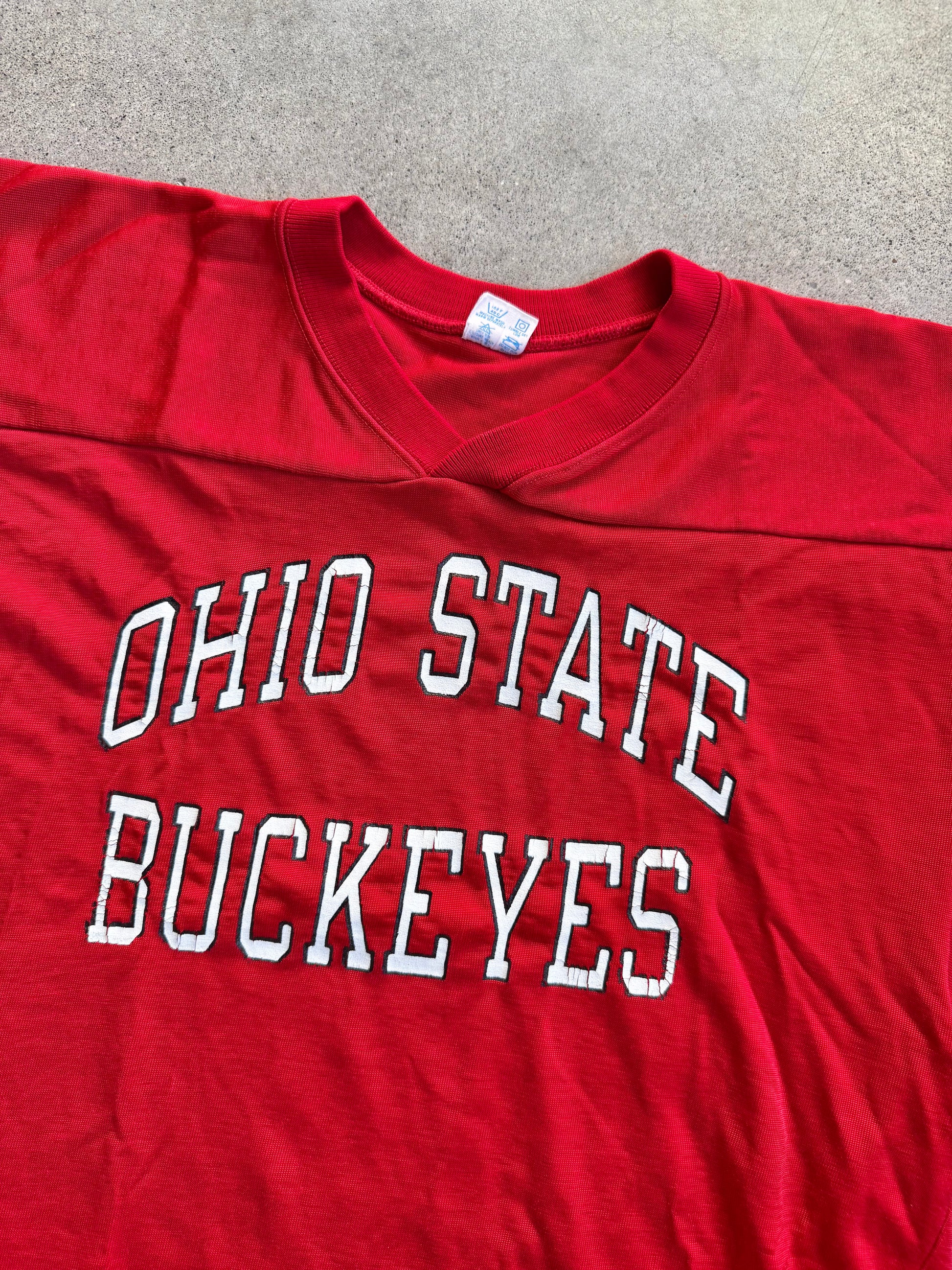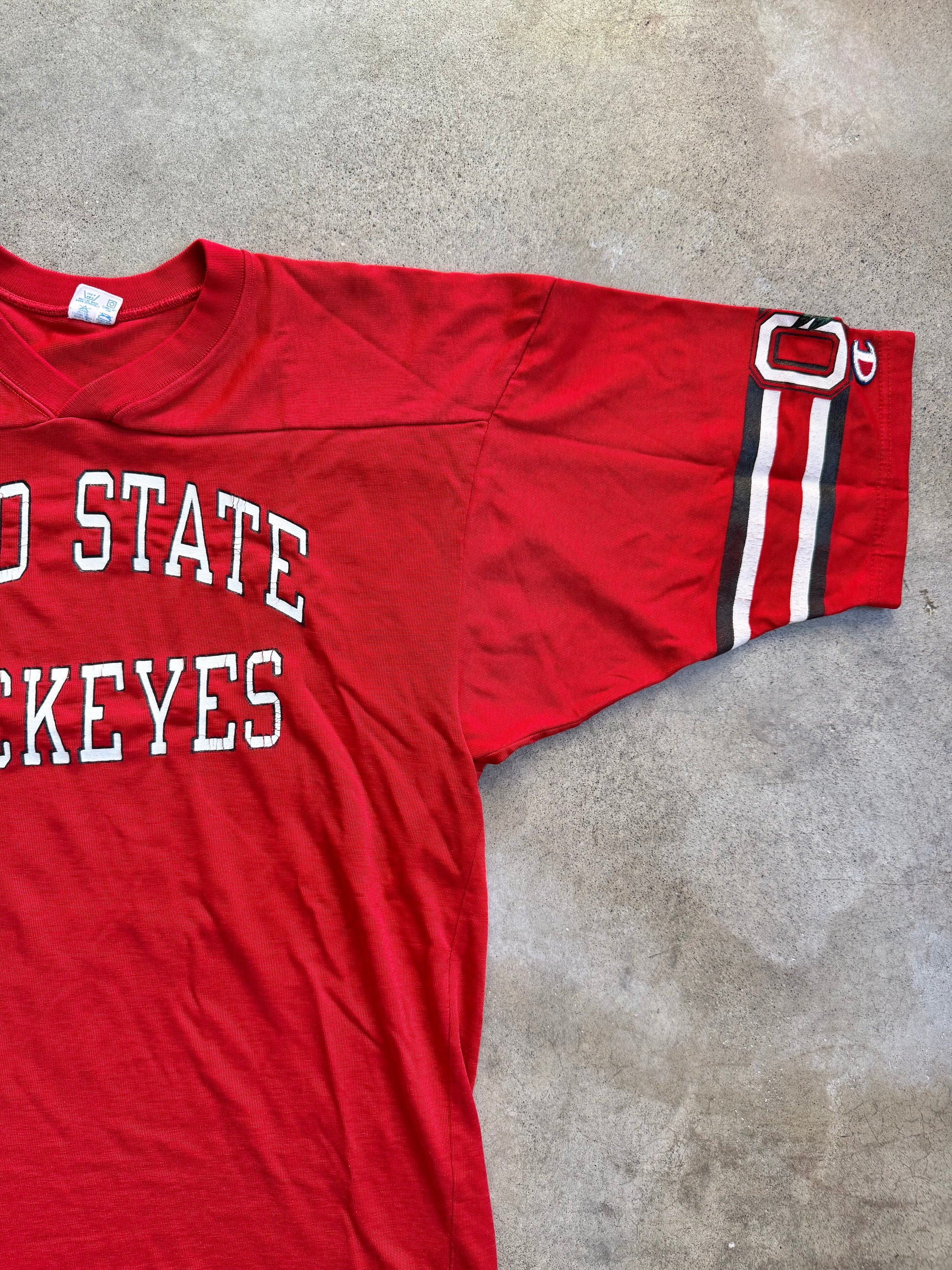 Vintage 1980s Champion Red Ohio State Football Jersey Athletic Tee.