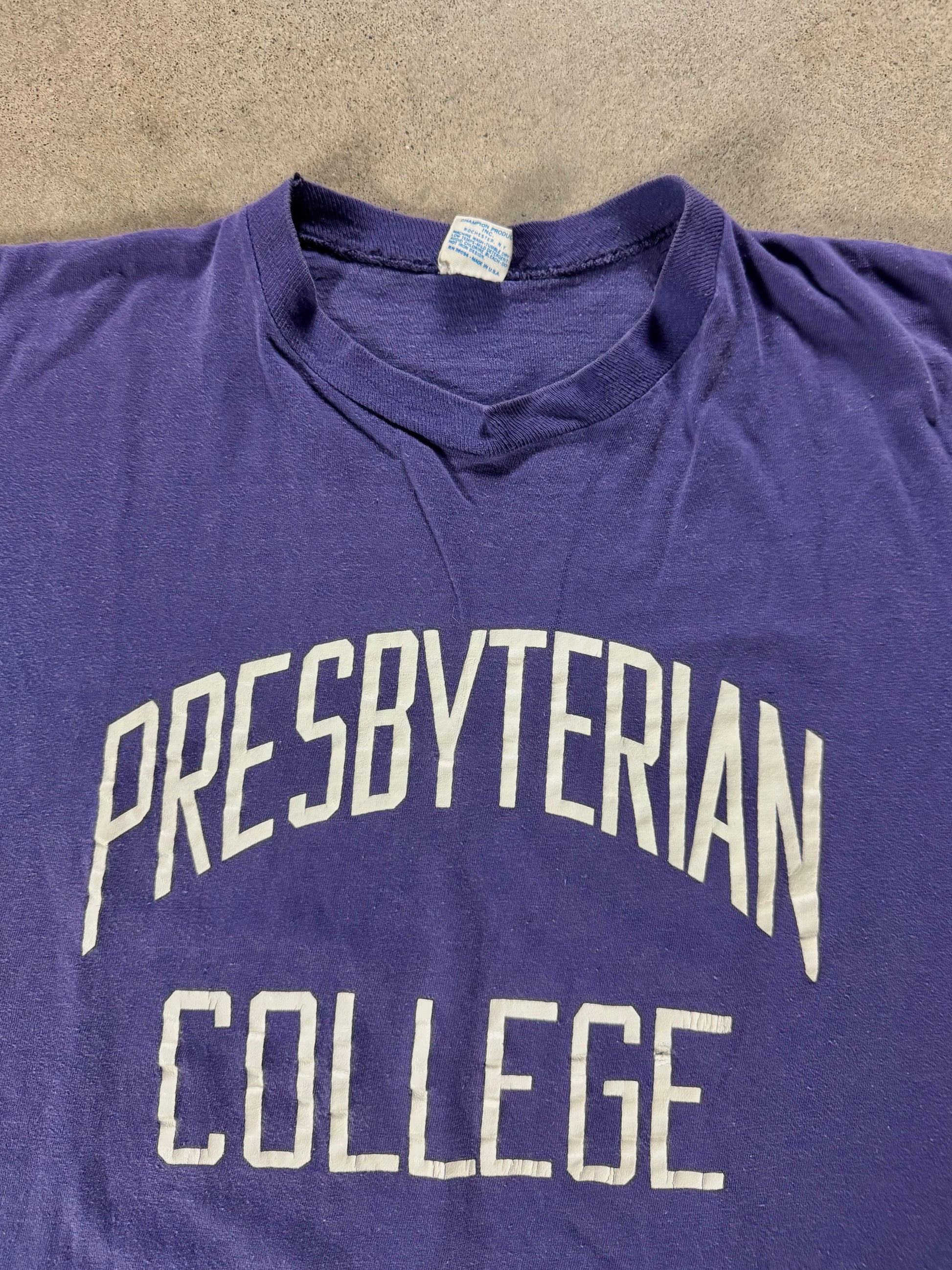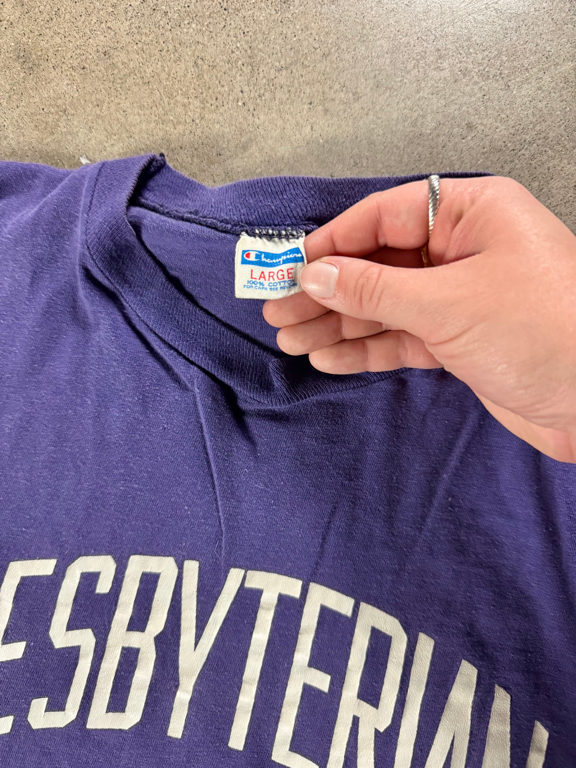Vintage 1980s Champion Purple Presbyterian College Tee | Large