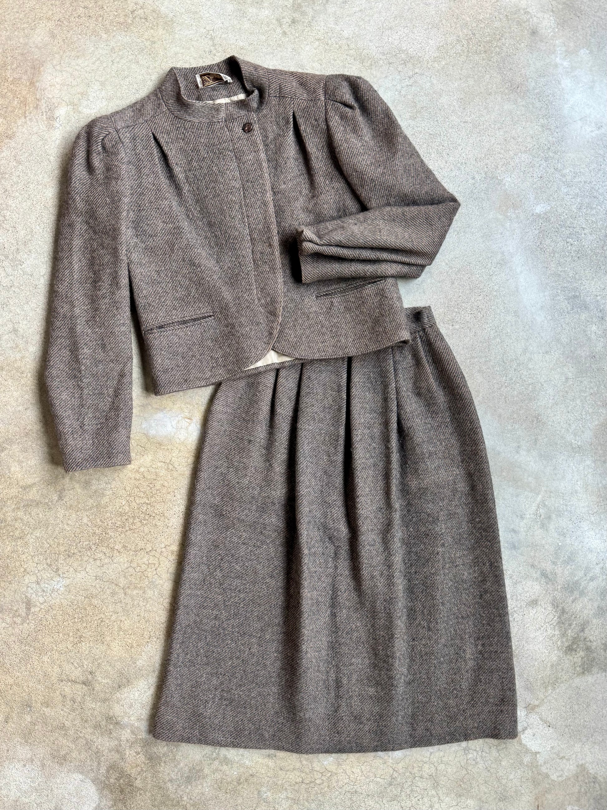Vintage 1980s Danielli Brown Wool Tweed Two-Piece Skirt Suit | Small