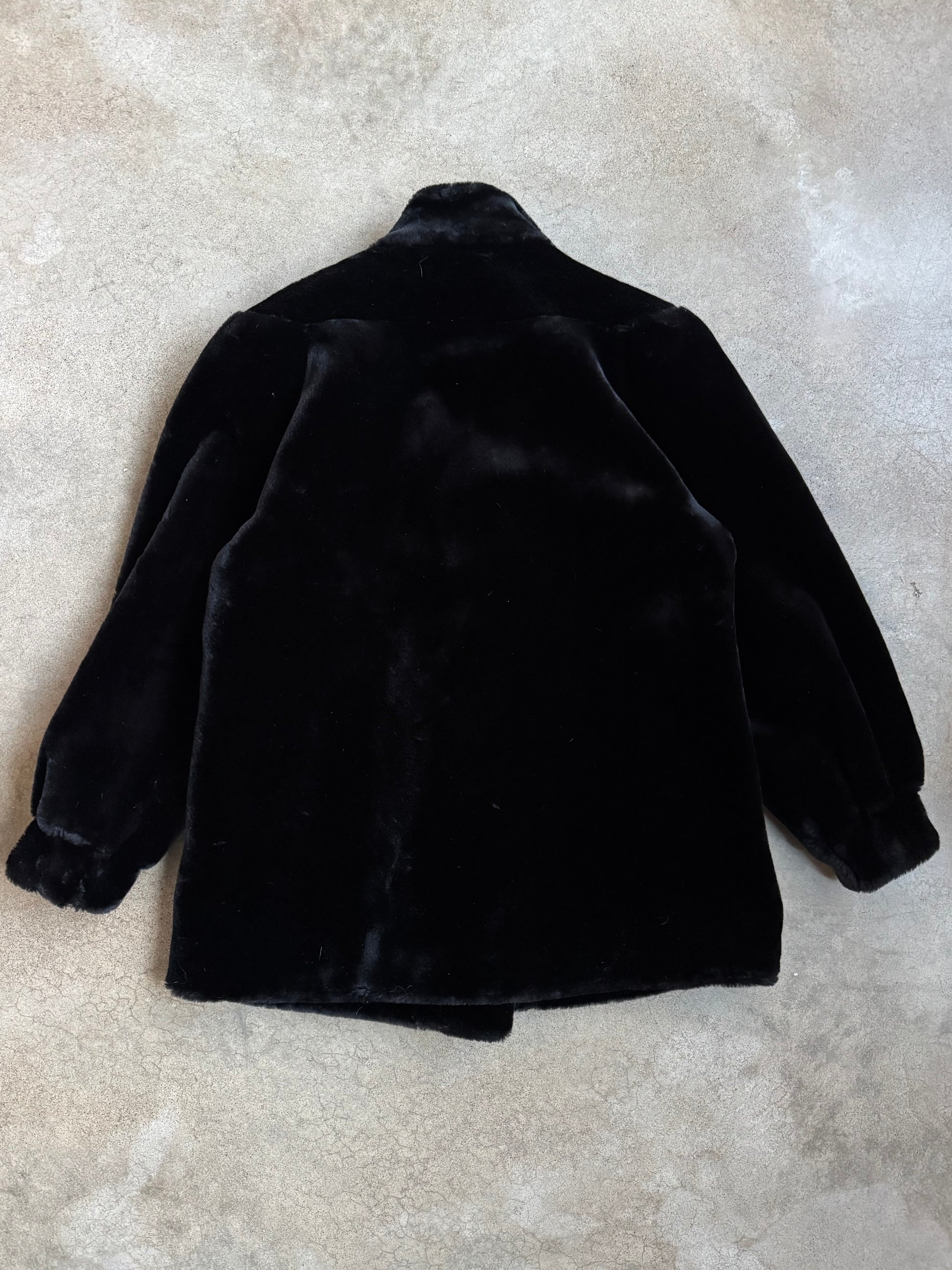 Vintage 1980s Donny Brook Black Faux Fur Short Coat | Small