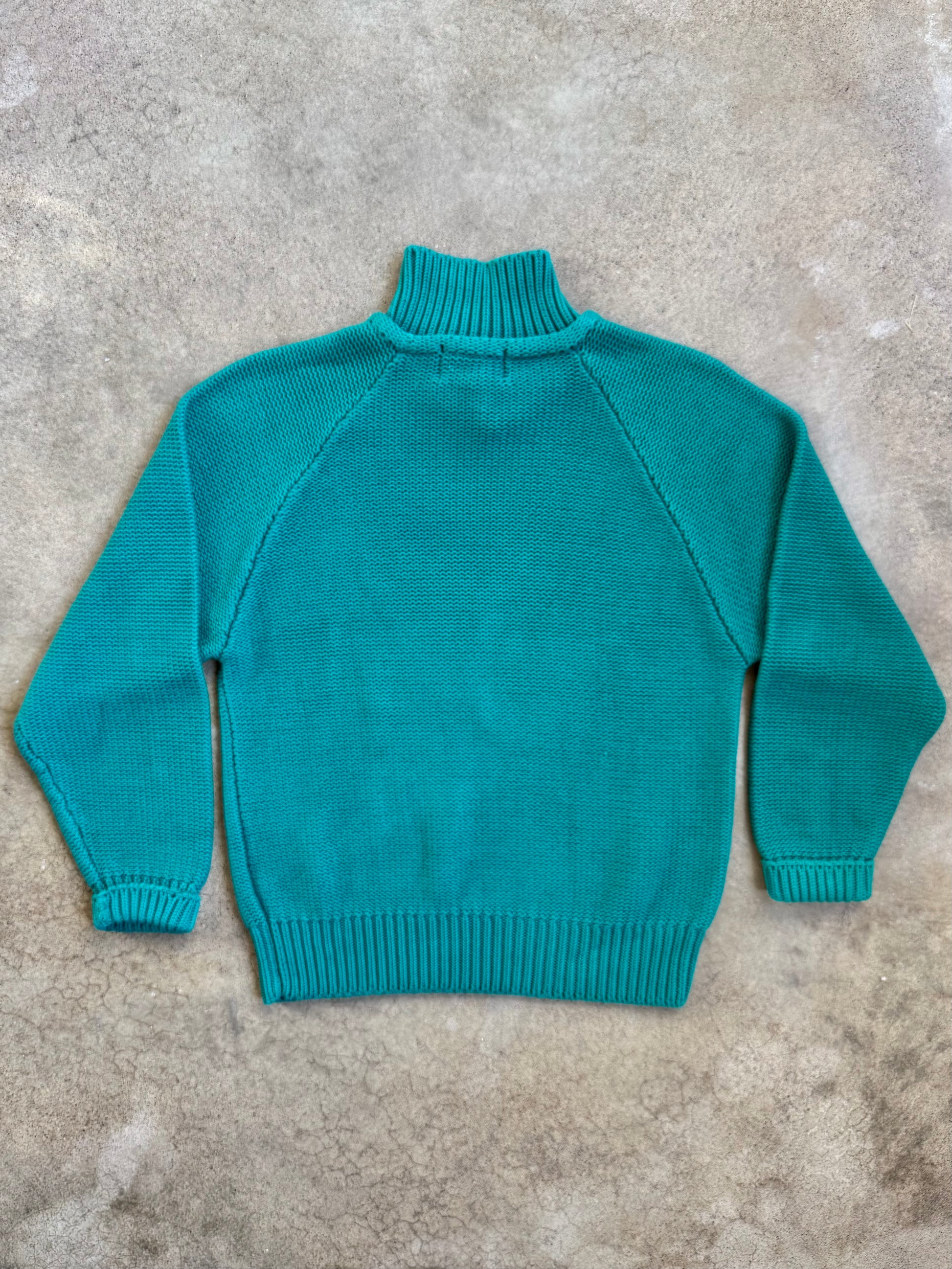 Vintage 1980s Eddie Bauer Teal Cotton Knit Collared Sweater. Heavyweight 100% cotton knit fabric.