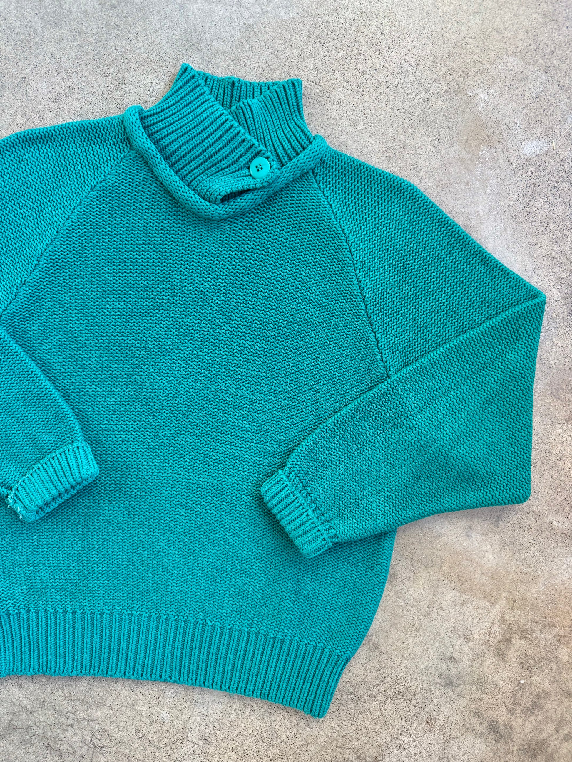 Vintage 1980s Eddie Bauer Teal 100% Cotton Knit Collared Sweater | Small