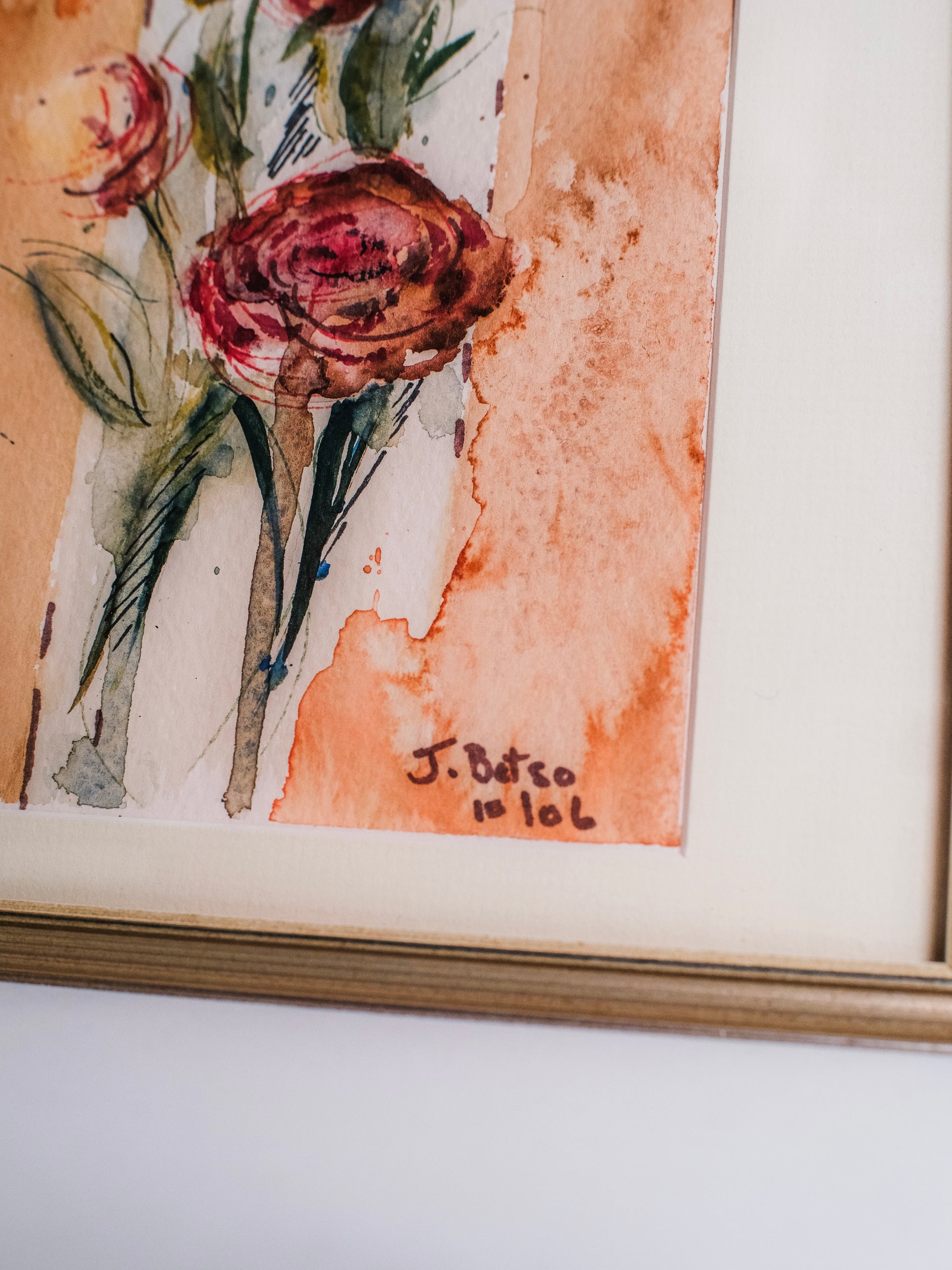 Vintage 1980s Framed & Signed Floral Watercolor Artwork