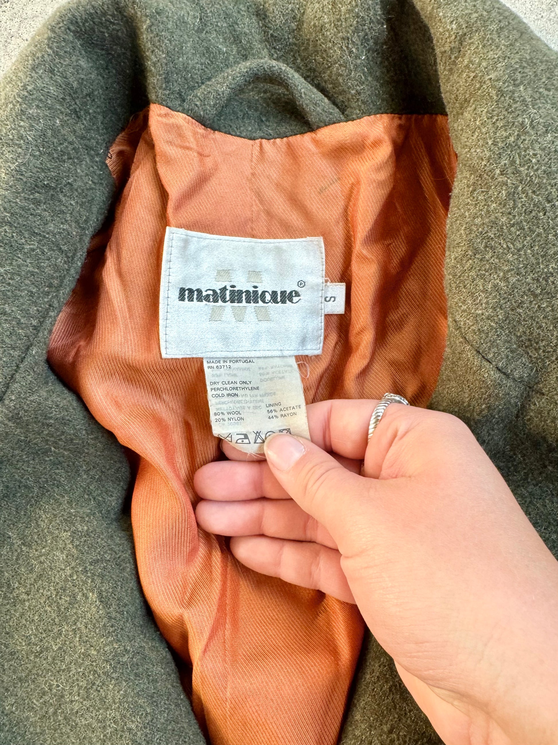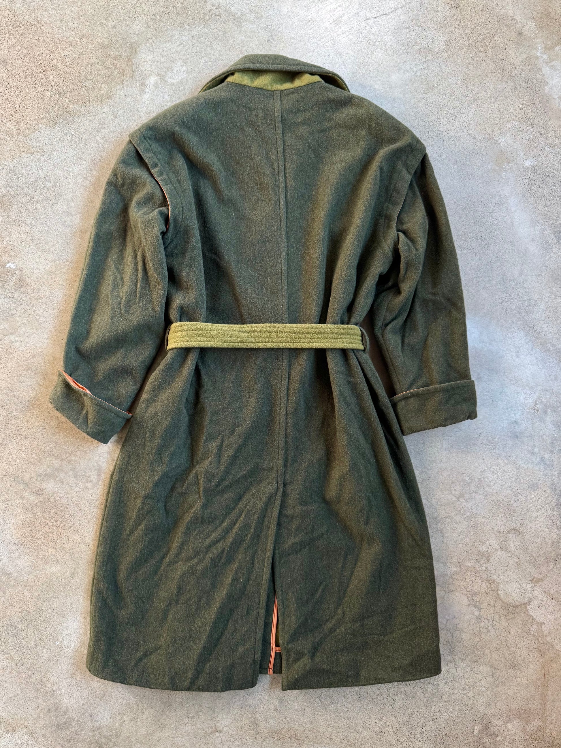 Vintage 1980s Matinique Green Wool Tie-Belt Overcoat | L/XL